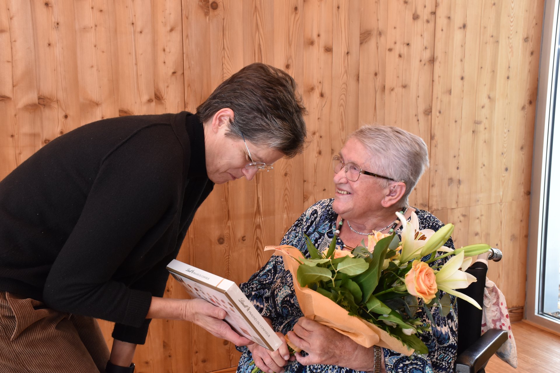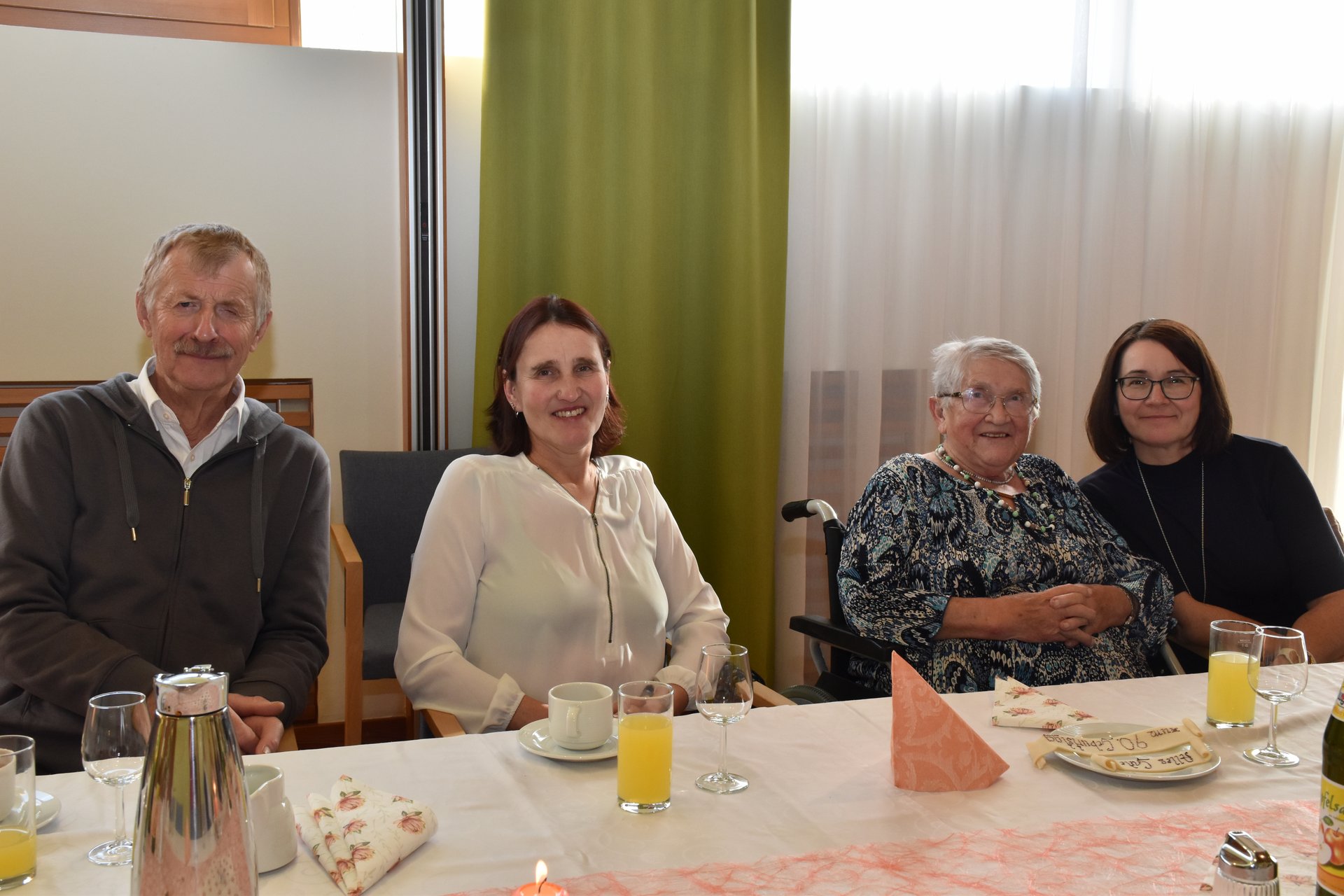 Seit März 2023 lebt Gottfrieda Rohrbeck im Pflege- und Betreuungszentrum (PBZ) Waidhofen/Thaya. Ihr Zimmer hat sie liebevoll und gemütlich mit ihren eigenen Möbeln eingerichtet – dabei wird sie tatkräftig von ihren Töchtern und ihrer Familie unterstützt. Sie fühlt sich sehr wohl und es geht ihr gut, was diesen Lebensabschnitt für sie angenehm macht. Umso größer war ihr Wunsch, ihren 90. Geburtstag im Kreise ihrer Familie und einigen Lieblingsgästen zu feiern. Geladen waren natürlich Kaufmännischer Direktor Rainer Hirschmann und Pflegedirektorin Roswitha Astner sowie Josef Ramharter, Bürgermeister von Waidhofen/Thaya. Auf Wunsch der Jubilarin erweiterte sich die Liste der Gäste noch auf Margit Biedermann, Dame der Seelsorge im PBZ und ihrer treuen Ehrenamtlichen, Anni Weber. Getreu dem Motto: „Es soll gefeiert werden, wie eben ein 90. Geburtstag gefeiert werden sollte“, wurde das Geburtstagskind mit Torte und Blumen beschenkt und mit einem Glas Wein und guten Wünschen angestoßen. Umringt von ihren Kindern – insgesamt hat Gottfrieda Rohrbeck fünf Kinder, elf Enkerl und zwölf Urenkerl (eines kommt noch im Mai zur Welt) – und Schwiegerkindern, feierte sie und genoss dabei jeden Augenblick. Auf die Frage, was ihr Vorsatz für die nächsten Jahre ist oder besser gesagt, was sie sich noch vornimmt, antwortete Gottfrieda Rohrbeck: „Naja, es soll halt nicht schlechter werden, denn sie möchte schon noch 100 Jahre alt werden!“ Sie selbst ist, wenn sie so erzählt, etwas traurig, dass die Sehkraft leider schwindet. Doch das Gedächtnis ist bravourös und insgesamt, ist sie richtig gut in Schuss. Das empfinden auch alle Gäste so und deshalb dauerte das gemütliche zusammen feiern etwas länger. „Liebe Frau Rohrbeck, herzliche Gratulation nochmals zum 90. Geburtstag und auf viele weitere schöne gemeinsame Jahre – vielleicht ja sogar auf ein Wiedersehen zum 100. Geburtstag im selben Raum und mit ebenso vielen Gästen“, wünscht das gesamte Team des PBZ Waidhofen/Thaya.