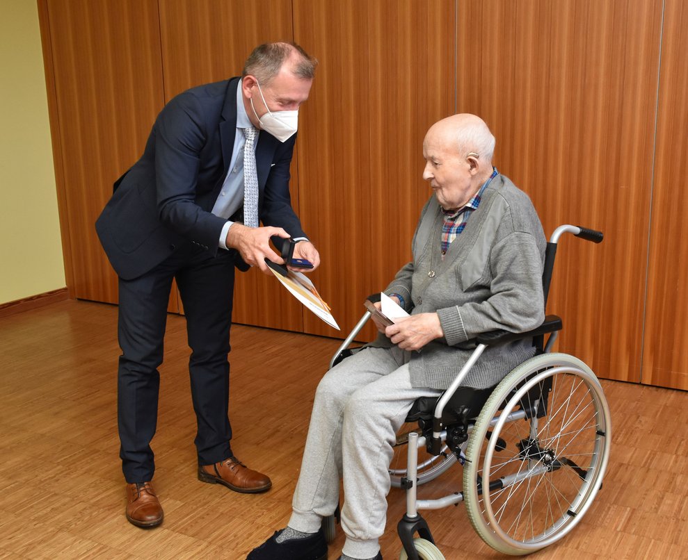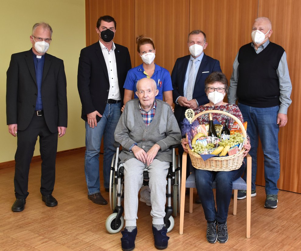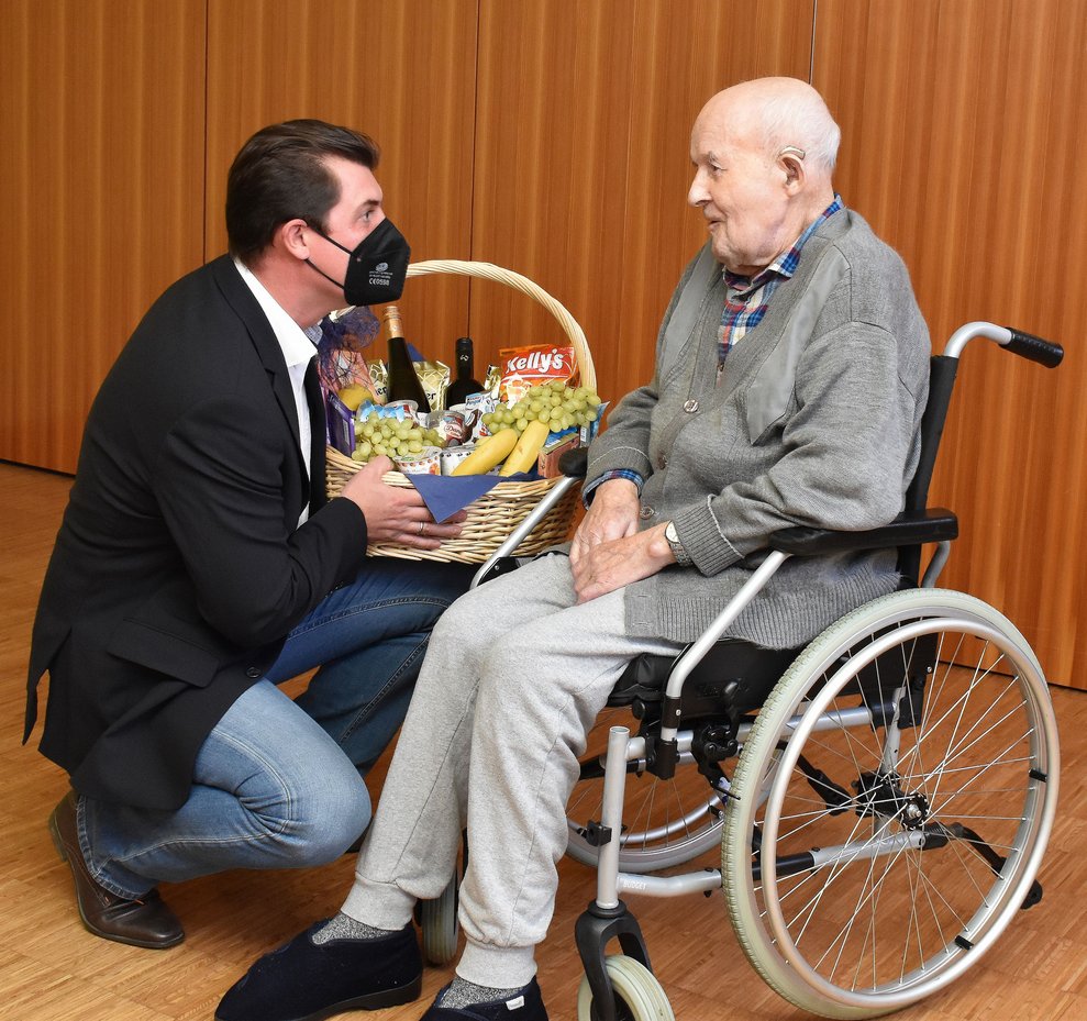 Herr Stipani wohnt seit 2015 bei uns im Pflege- und Betreuungszentrum Waidhofen an der Thaya. Den 95. Geburtstag feierte das Geburtstagskind mit Tochter Ingrid und im Beisein von Dir. Rainer Hirschmann, Bürgermeister Josef Ramharter, Pfarrer Friedrich Mikesch, DGKP Irene Steinböck und Freiwilligen Mitarbeiter Herbert Ecker!