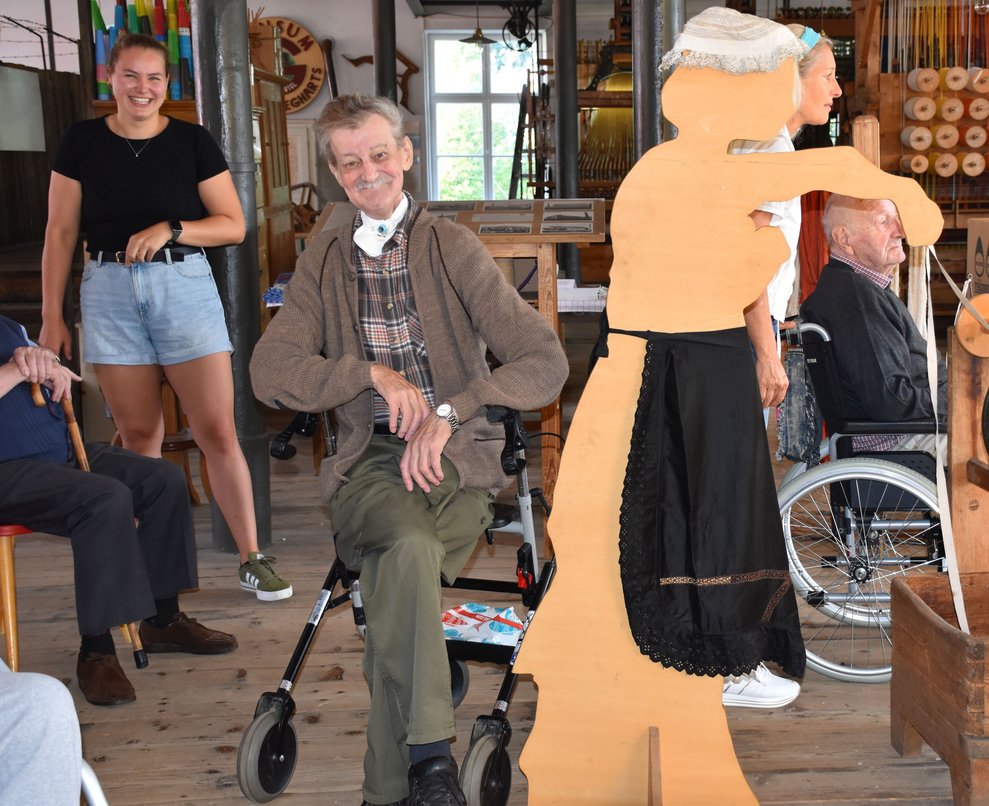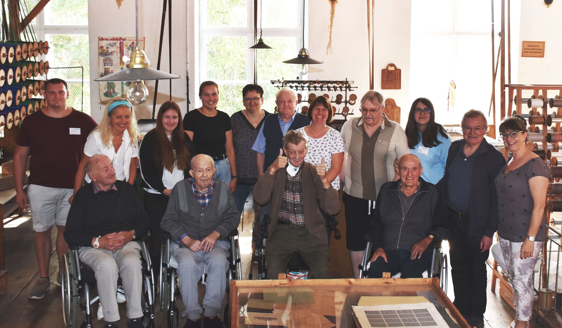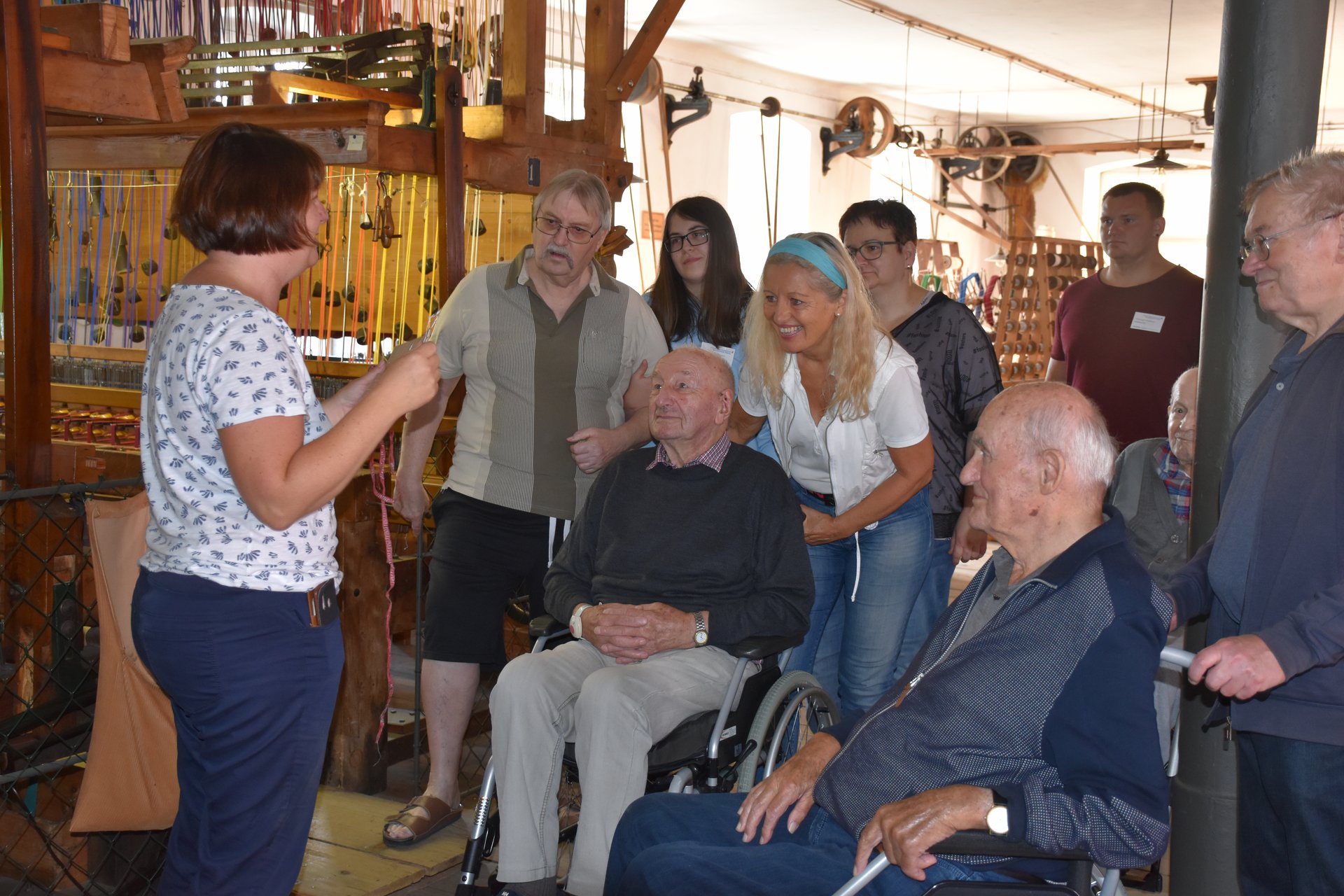 Kürzlich besuchten einige Bewohnerinnen und Bewohner unseres Hauses das Textilmuseum in Groß-Siegharts. Begleitet wurden sie von MEA (Managerin Ehrenamt und Alltagsbegleitung) Anita Talamas-Engel, MEA Carola Wögerer und einigen freiwilligen Mitarbeiterinnen und Mitarbeitern. Museumsführerin Ulrike Pany zeigte und erklärte die verschiedenen Stationen, die vielfältige Einblicke in die Textilgeschichte der Region gaben. Einer der Besucher, Karl Trinko, hatte sogar damals mitgearbeitet, als das Museum Ende der 80er Jahre eingerichtet wurde und er erinnerte sich noch gut daran. Dank der Muskelkraft der freiwilligen Helferinnen und Helfer war es möglich, das gesamte Museum mit den Rollstühlen zu besichtigen und einen gelungenen Ausflug für alle Beteiligten zu ermöglichen.