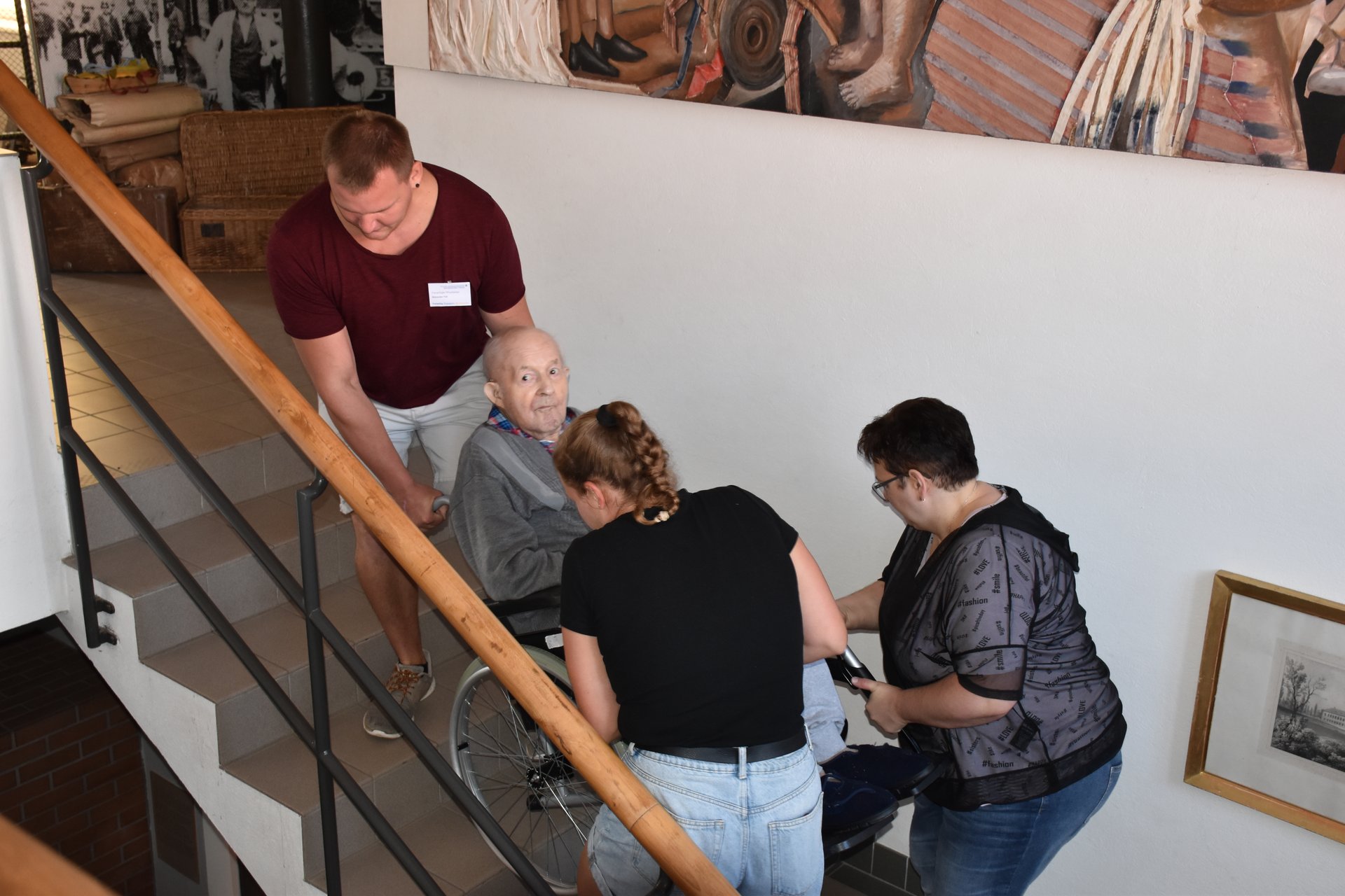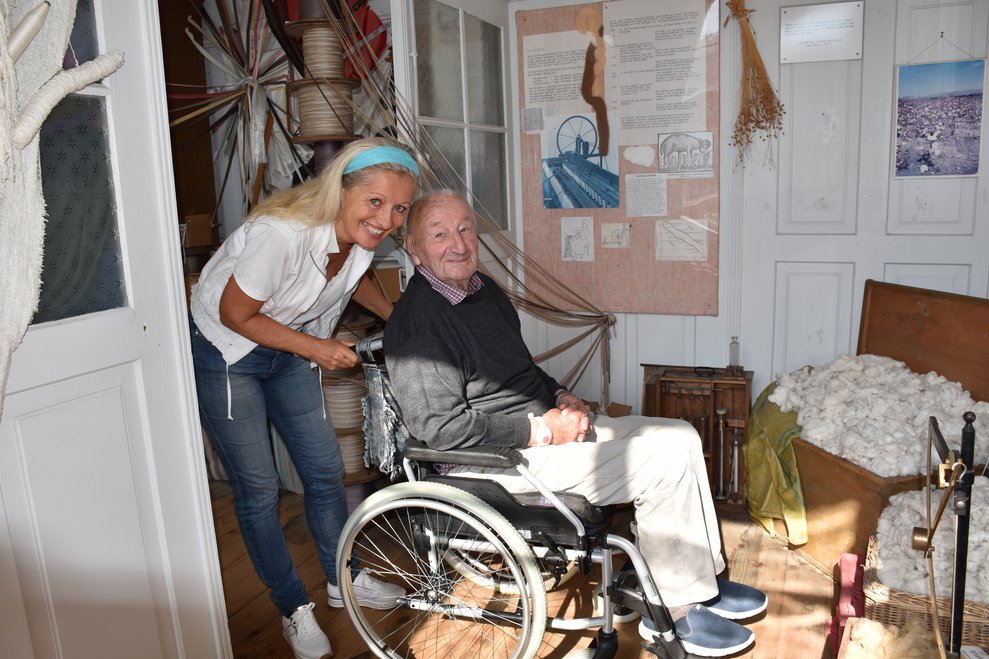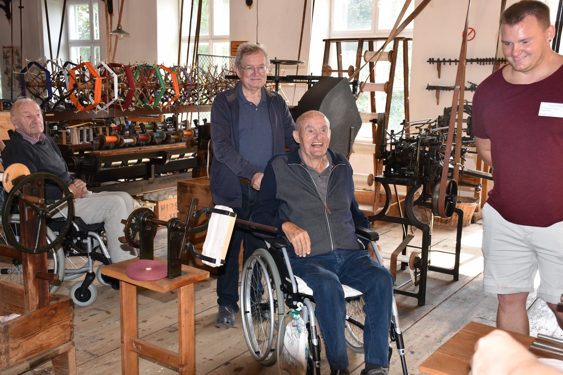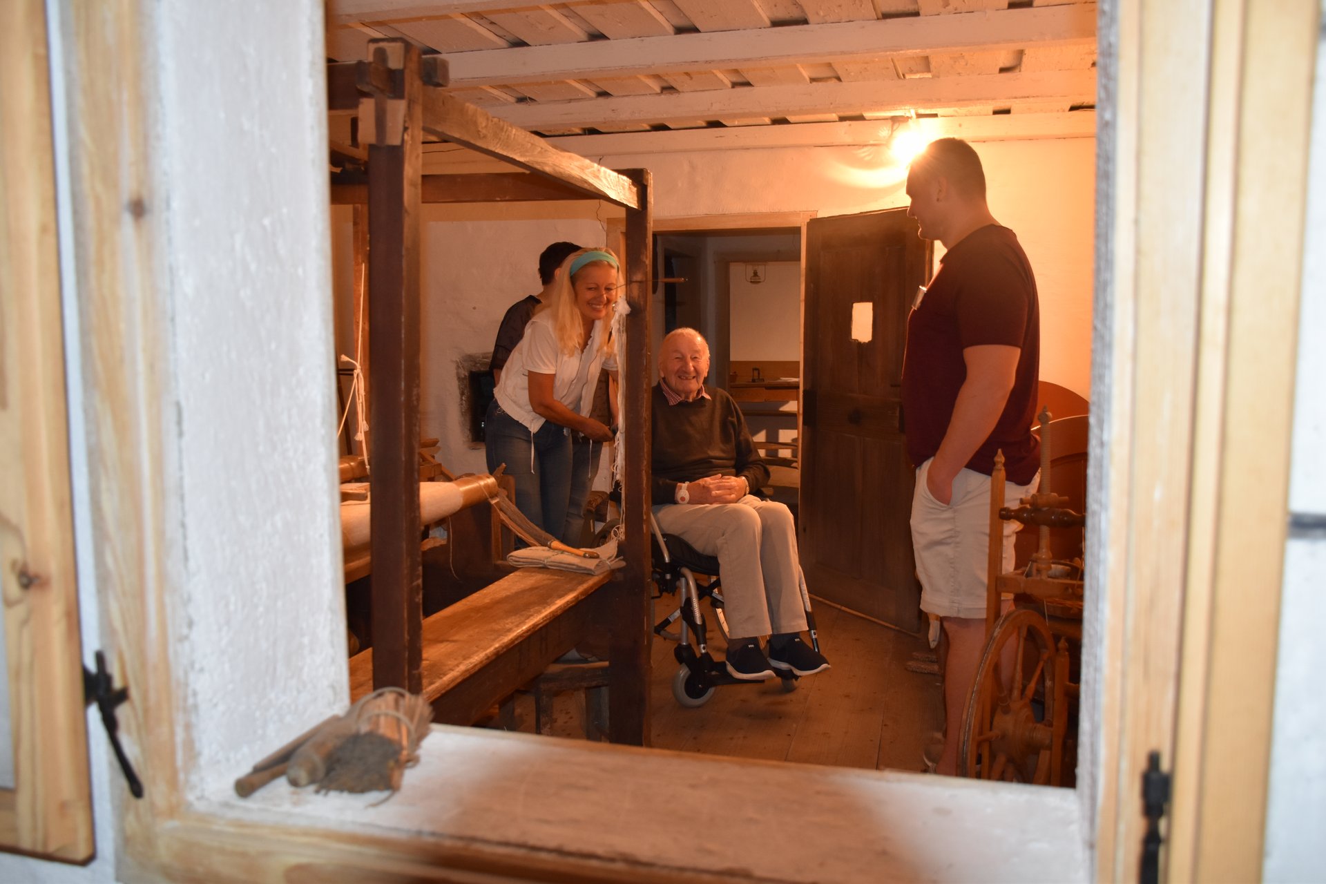 Kürzlich besuchten einige Bewohnerinnen und Bewohner unseres Hauses das Textilmuseum in Groß-Siegharts. Begleitet wurden sie von MEA (Managerin Ehrenamt und Alltagsbegleitung) Anita Talamas-Engel, MEA Carola Wögerer und einigen freiwilligen Mitarbeiterinnen und Mitarbeitern. Museumsführerin Ulrike Pany zeigte und erklärte die verschiedenen Stationen, die vielfältige Einblicke in die Textilgeschichte der Region gaben. Einer der Besucher, Karl Trinko, hatte sogar damals mitgearbeitet, als das Museum Ende der 80er Jahre eingerichtet wurde und er erinnerte sich noch gut daran. Dank der Muskelkraft der freiwilligen Helferinnen und Helfer war es möglich, das gesamte Museum mit den Rollstühlen zu besichtigen und einen gelungenen Ausflug für alle Beteiligten zu ermöglichen.