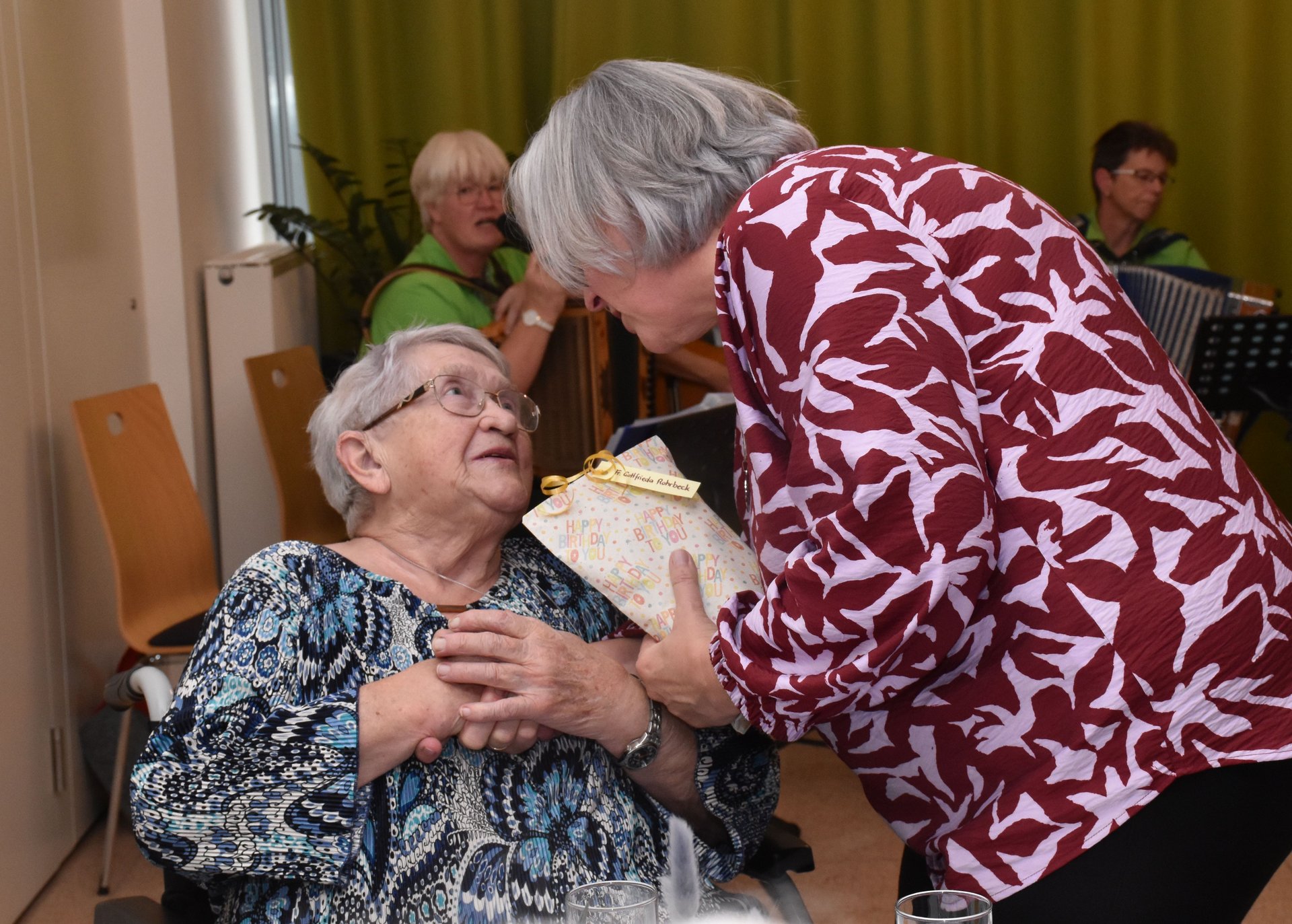 Eine kleine gemütliche Runde versammelte sich in der Cafeteria des Hauses, um die Geburtstagskinder von November und Dezember hochleben zu lassen! Auch wurden die Jubilarinnen und Jubilare mit einem sorgsam zusammen gestellten Packerl beschenkt und von der Harmonika Musi, allesamt Ehrenamtliche im PBZ, verwöhnt.