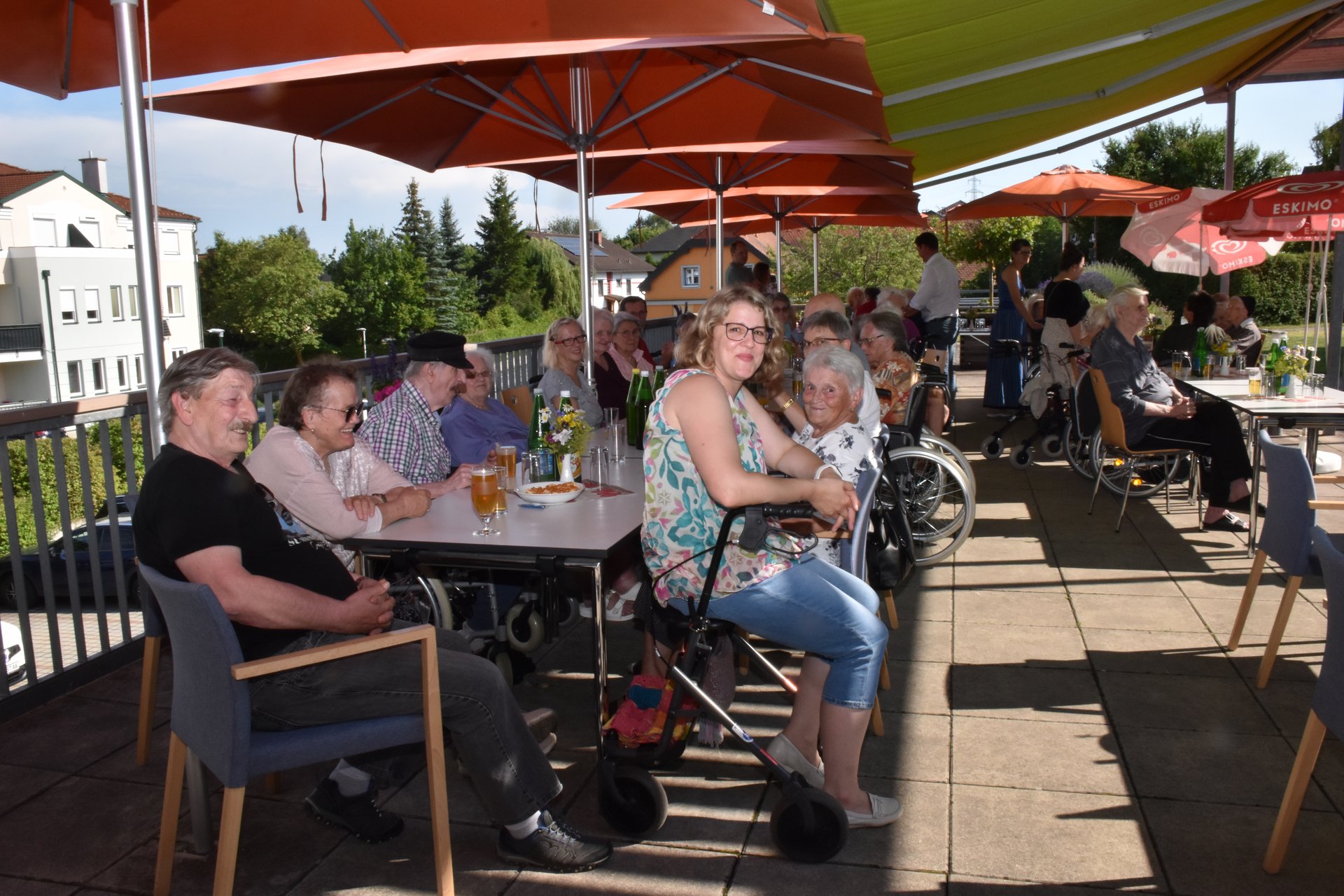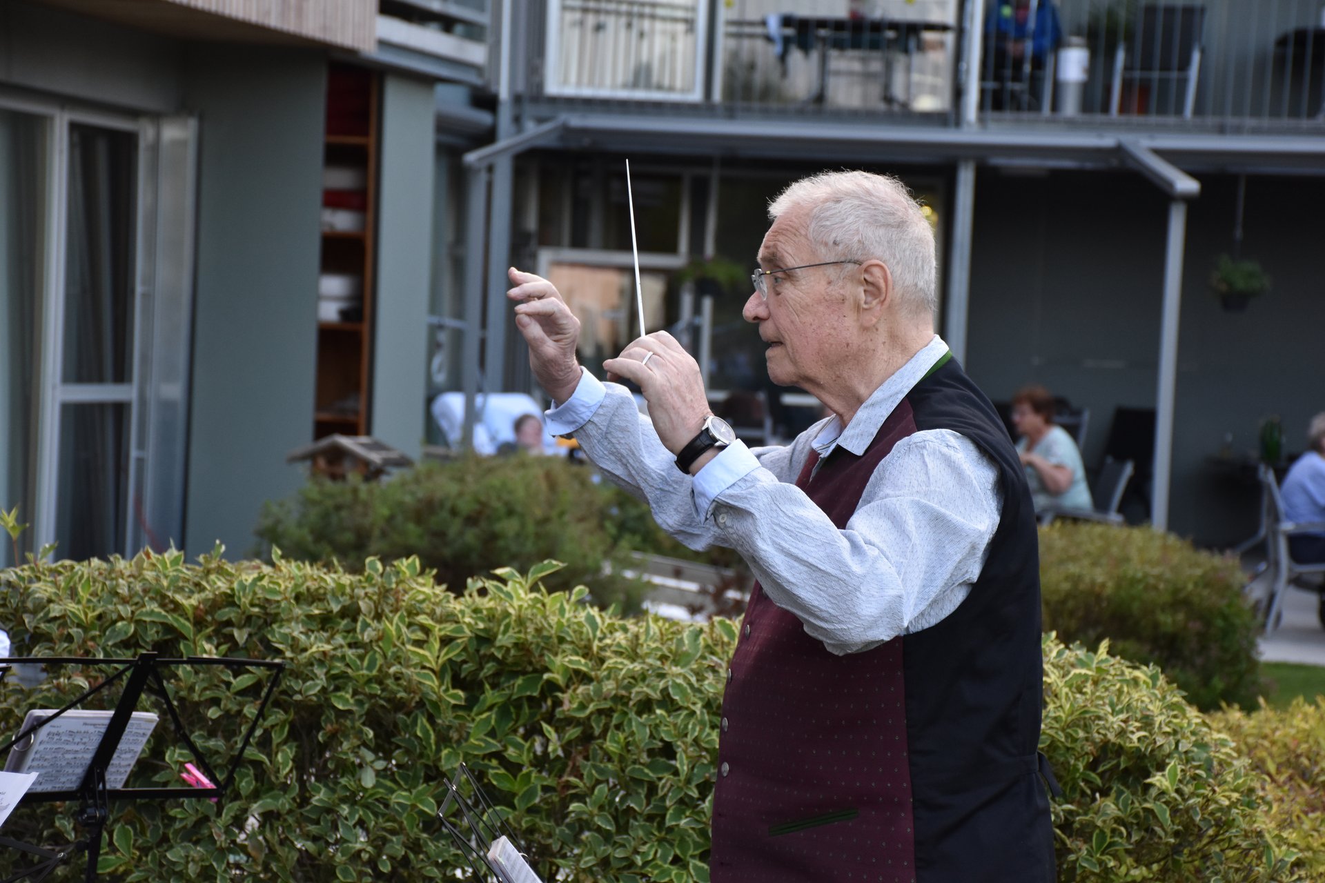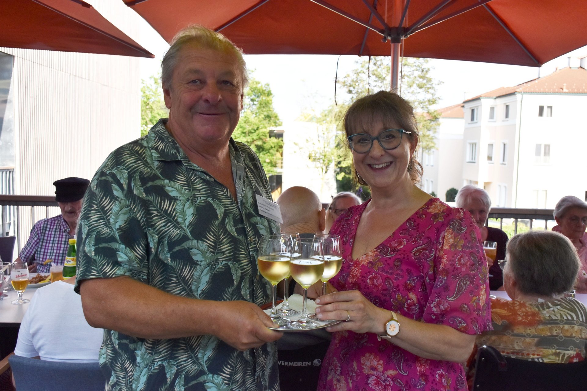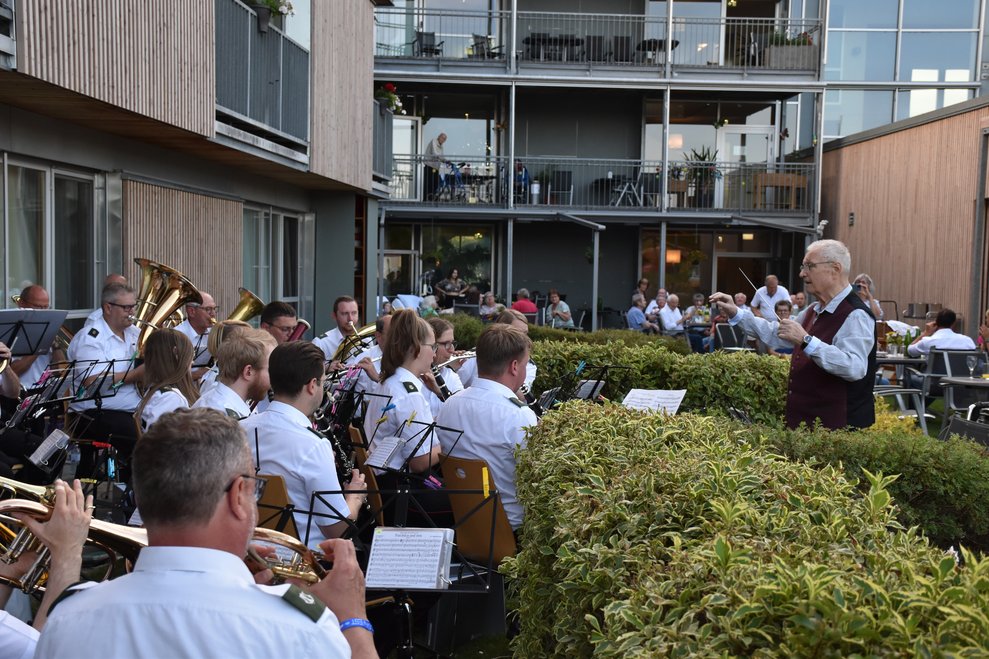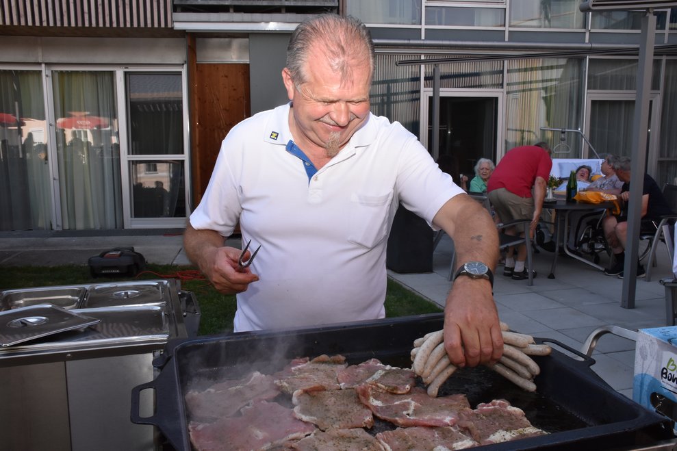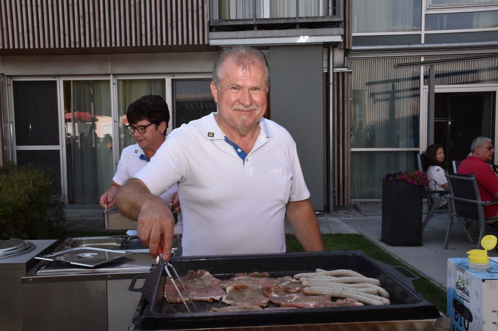 Der Dämmerschoppen im Garten des Pflege- und Betreuungszentrum Waidhofen/Thaya war wieder ein schönes Highlight. Verwöhnt von Wärme und Sonnenstrahlen, den beschwingten und vielseitigen Melodien des Blasorchesters Waidhofen/Thaya unter der Leitung von Kapellmeisterin Silvia Jäger, trafen sich viele Bewohnerinnen, Bewohner, Pflegedirektorin Roswitha Astner, kaufmännischer Direktor Rainer Hirschmann, viele Ehrenamtliche und weitere Gäste zu einem unvergesslichen Abend. Ein besonderes Highlight war der Wechsel des Dirigentenstabes an das Ehrenmitglied Eduard Jäger, der seit kurzem im PBZ wohnhaft ist. Ein sehr emotionaler Moment, der sich mit gemeinsamen interessanten Gesprächen, Essen vom Grill und Dankesworten an alle Anwesenden abwechselte und zu einem besonderen Ganzen machte.
