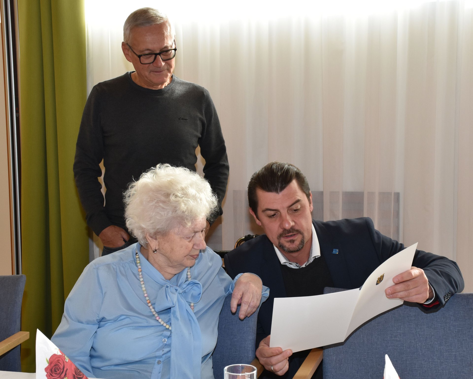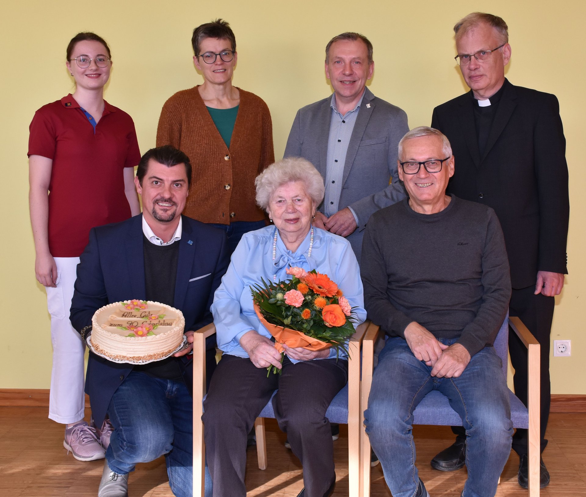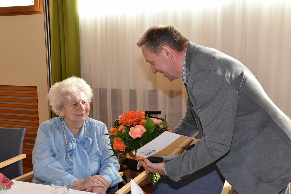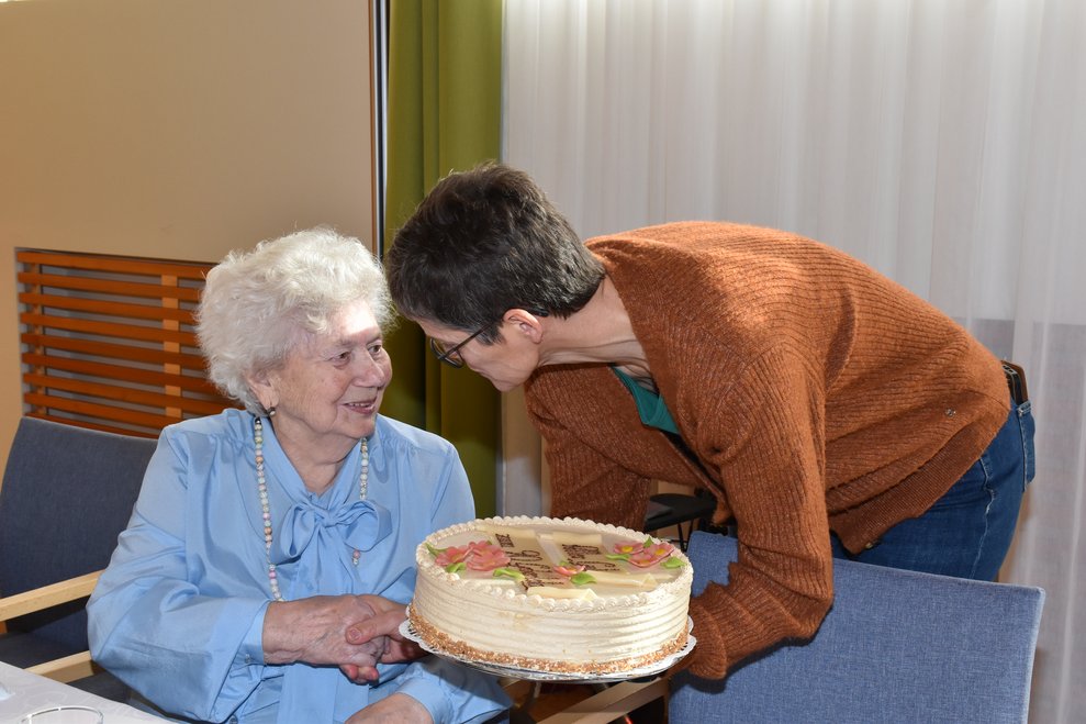 Sie feierte ihren 90. Geburtstag mit ihrem Sohn Karl und im Beisein vom kaufmännischen Direktor Rainer Hirschmann, Pflegedirektorin Roswitha Astner, Bürgermeister Josef Ramharter und Pfarrer Friedrich Mikesch.