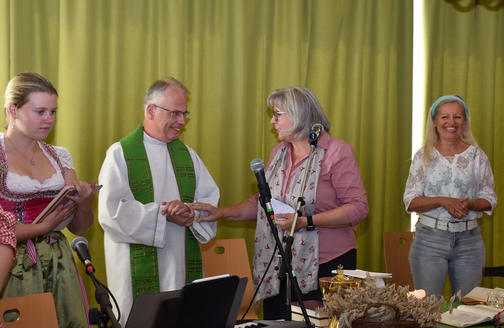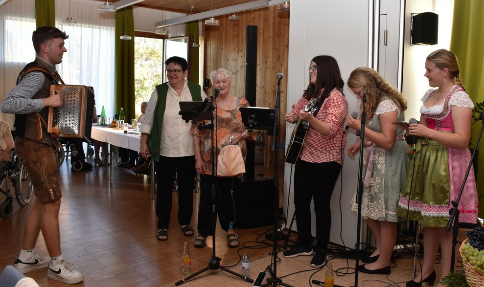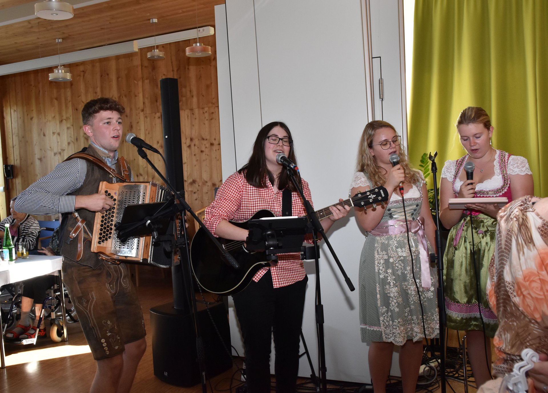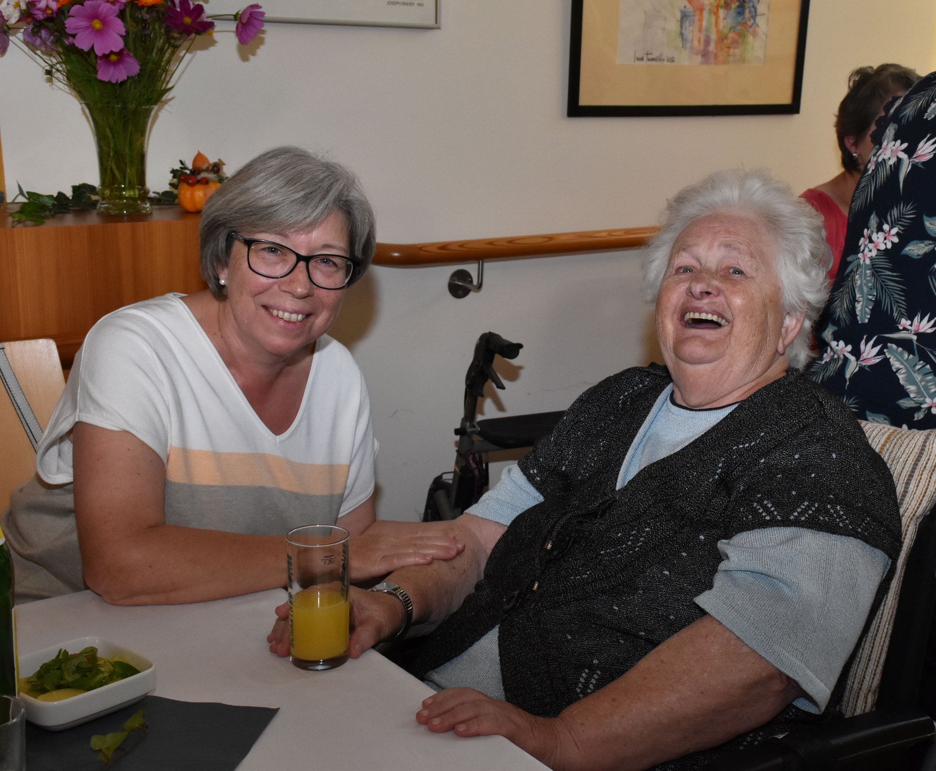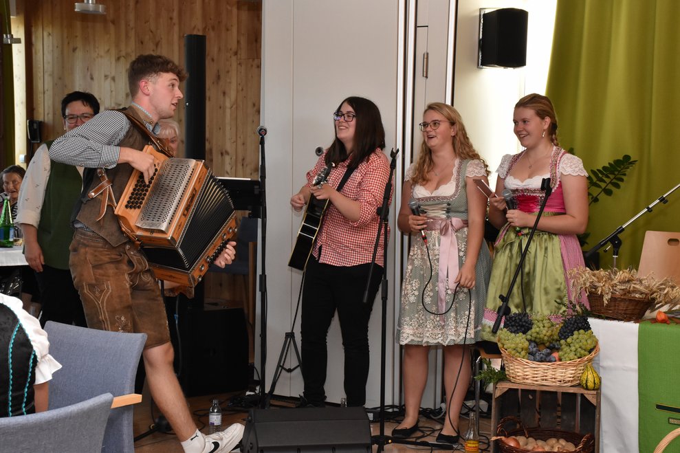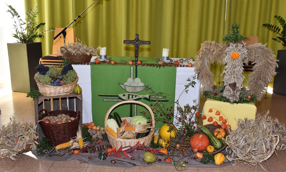 Das Erntedankfest fand in der Cafeteria des Pflege- und Betreuungszentrums statt. Pfarrer Friedrich Mikesch gestaltete gemeinsam mit Dr. Mag. Margit Biedermann von der Seelsorge und der neuen Musikgruppe „Freindschoft“ aus dem Waldviertel die Heilige Messe. Von Bewohnerinnen und Bewohnern angeregt, wurde danach zur volkstümlichen spritzigen Musik der jungen Band auch gesungen und getanzt. Erklärung dafür: Nach getaner, oft harter mühsamer Arbeit, wurde für die gute Ernte gedankt und anschließend gefeiert und getanzt. Dadurch wurde der Zusammenhalt gestärkt und die Folgen der körperlichen Anstrengungen während der Ernte waren weniger spürbar.