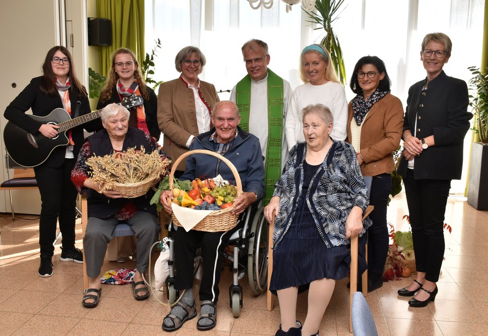 Das Erntedankfest mit Festgottesdienst fand im gemütlichen Rahmen in der Cafeteria statt. Stimmungsvoll musikalisch begleitet wurde Hr. Pfarrer Friedrich Mikesch von Bettina Wally und Lara Hurmer. Es war für alle die Gelegenheit Rückschau zu halten, zu danken und um den Segen für das nächste Jahr zu beten. Die bunte Vielfalt der Dekoration vor dem Altar wiederspiegelte die reiche Ernte und das Wohlwollen der Natur uns gegenüber.