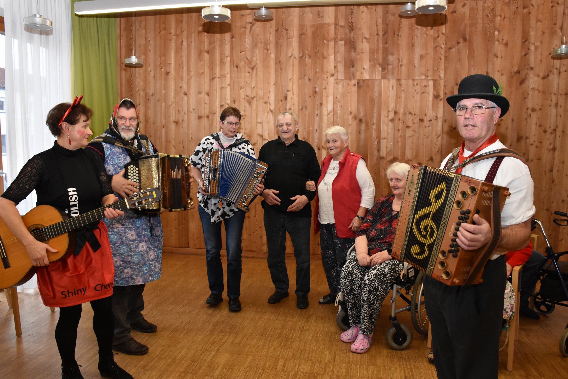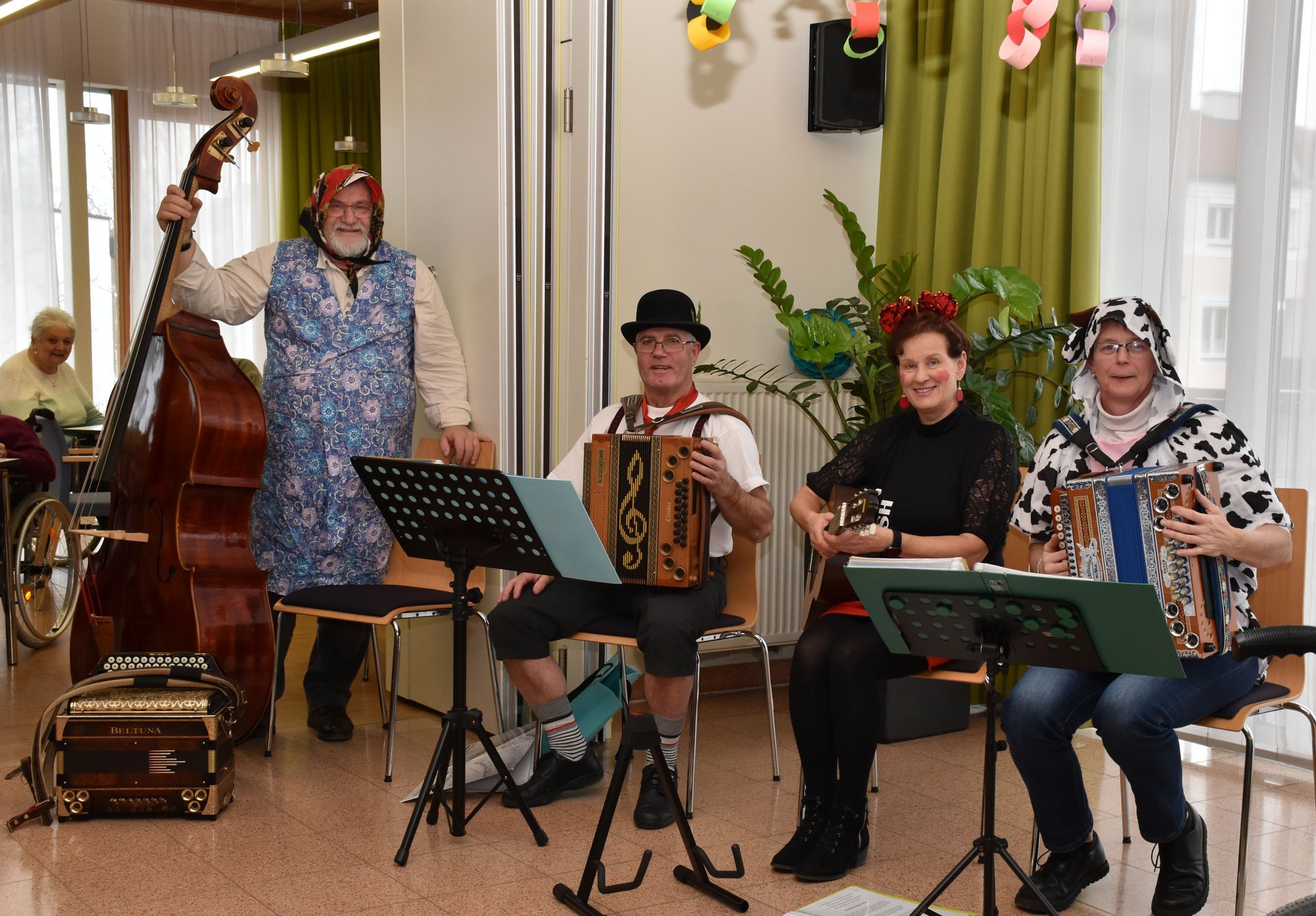 Die Ehrenamts-Musi vom PBZ Waidhofen/Thaya ist eigentlich die Waldviertler Harmonikamusi. Wie Pech und Schwefel halten sie zusammen und sind unzertrennlich mit den Bewohnerinnen und Bewohnern verbunden! Sie kennt man, sie will man spielen hören! Es ist klar, dass es kein Faschingsspektakel ohne diese Musikerinnen und Musiker geben wird! Verkleidet, immer in wechselnder Besetzung, aber allesamt Ehrenamtliche, heizte die Gruppe mit viel Action, jeder Menge Musik, Spaß und Witzen den Gästen so richtig ein! Sie sorgten für manch heiße Schuhsohle und für schöne Erinnerungen an den Nachmittag!