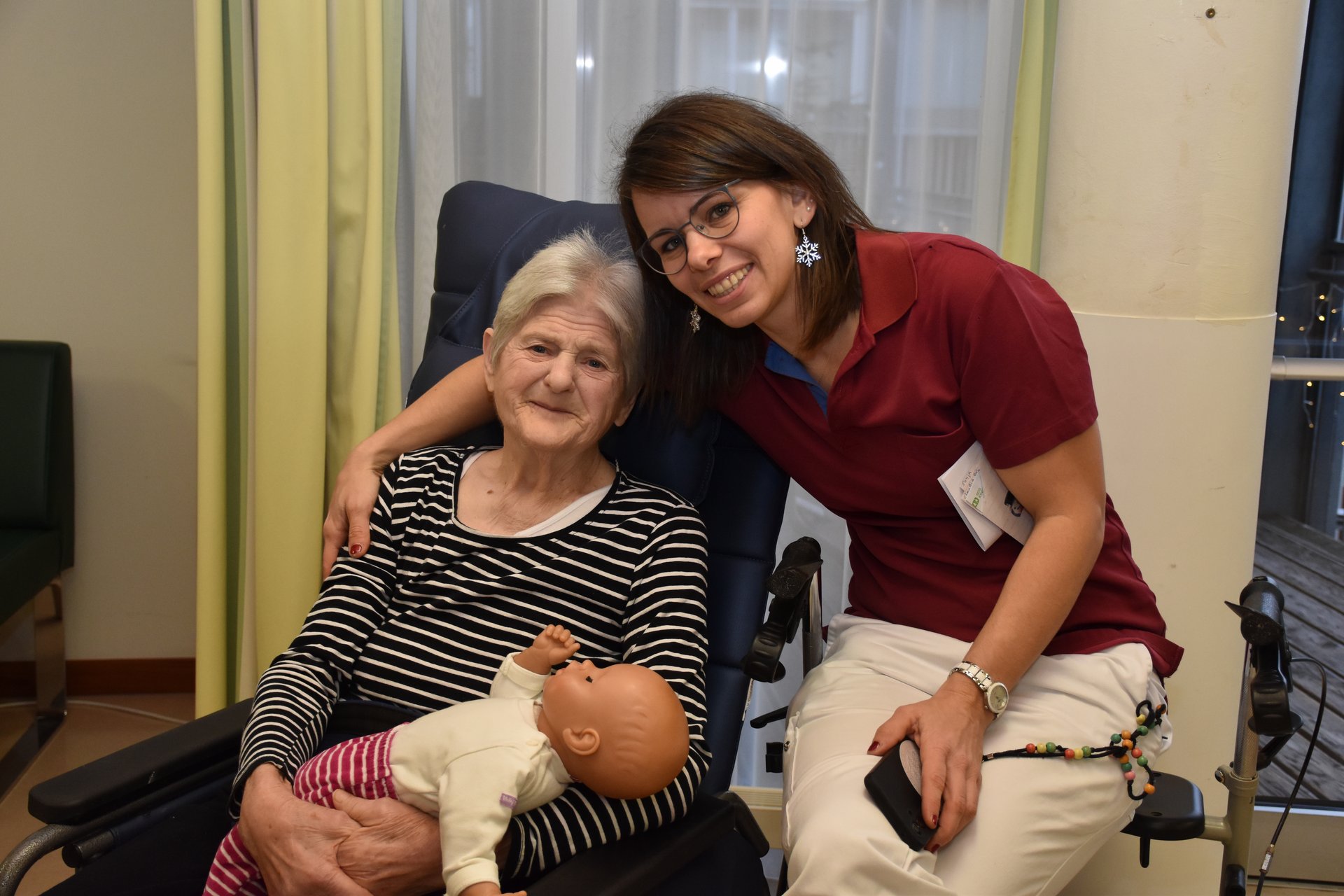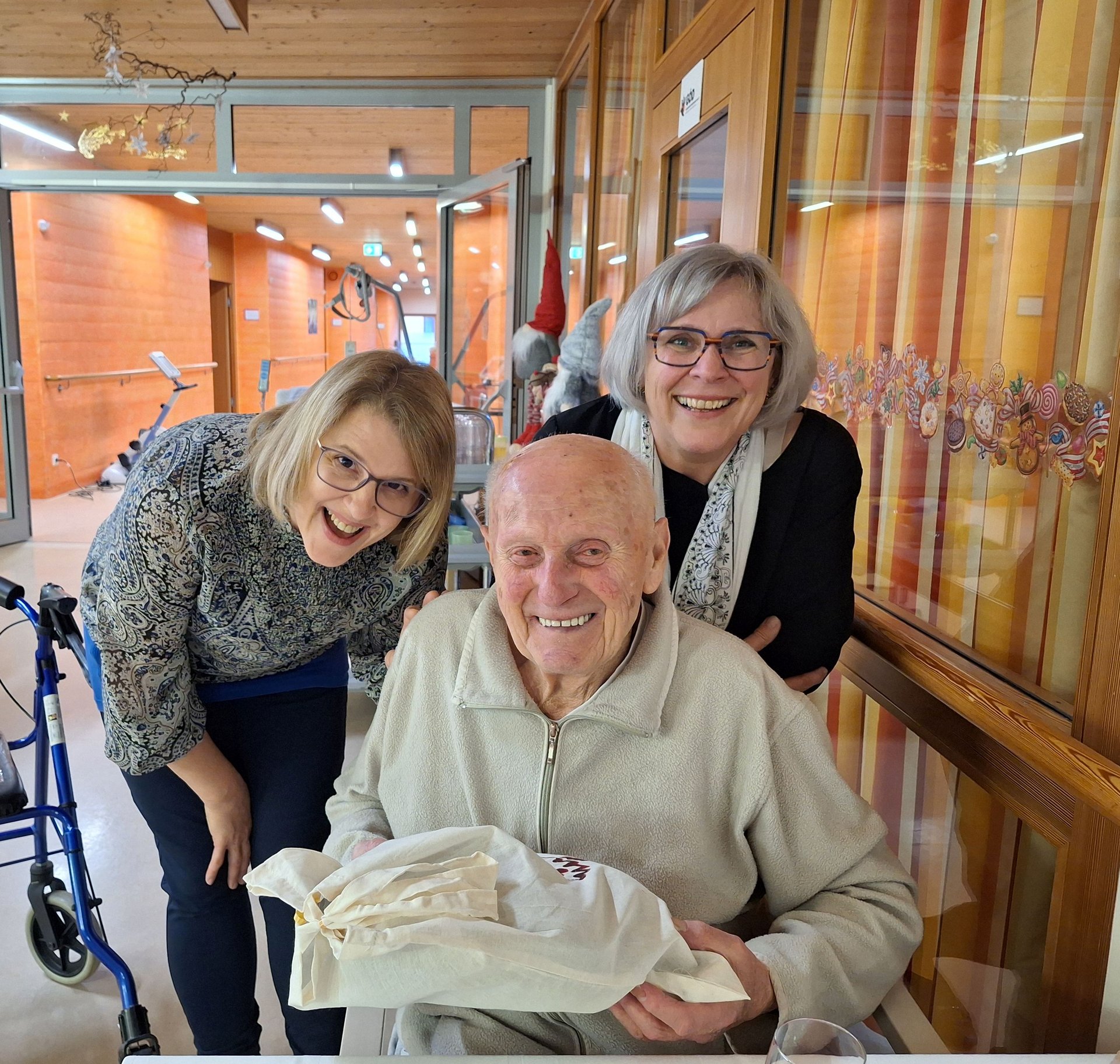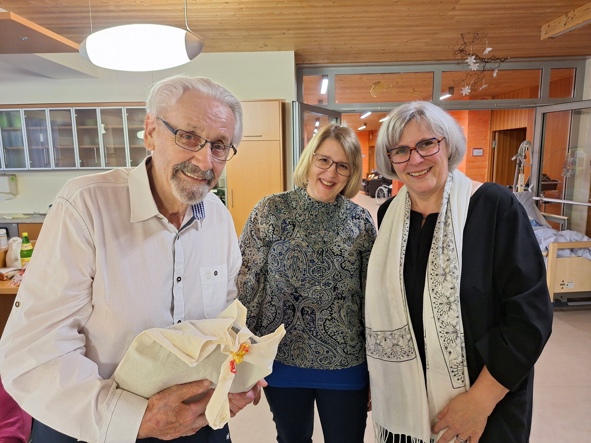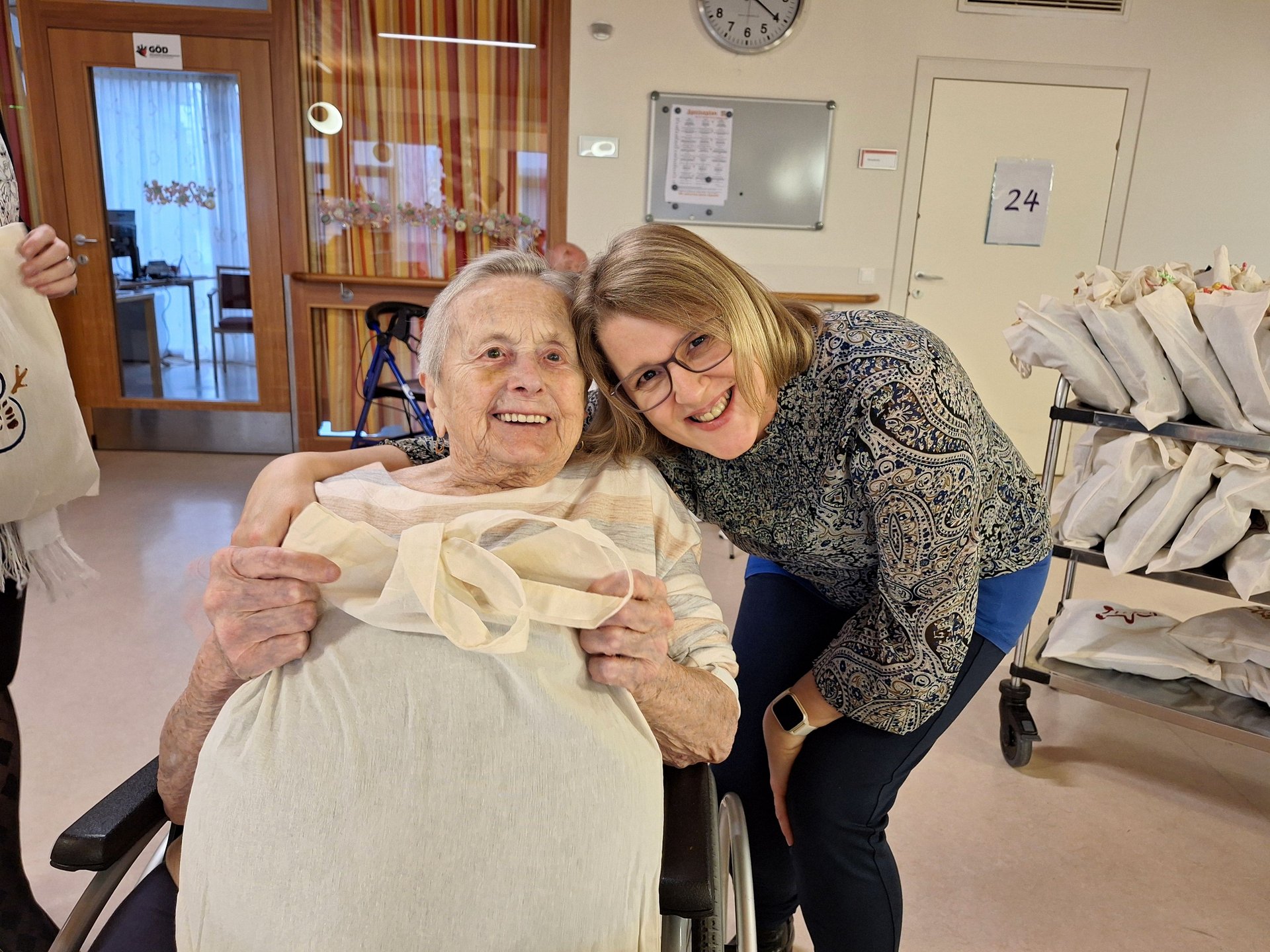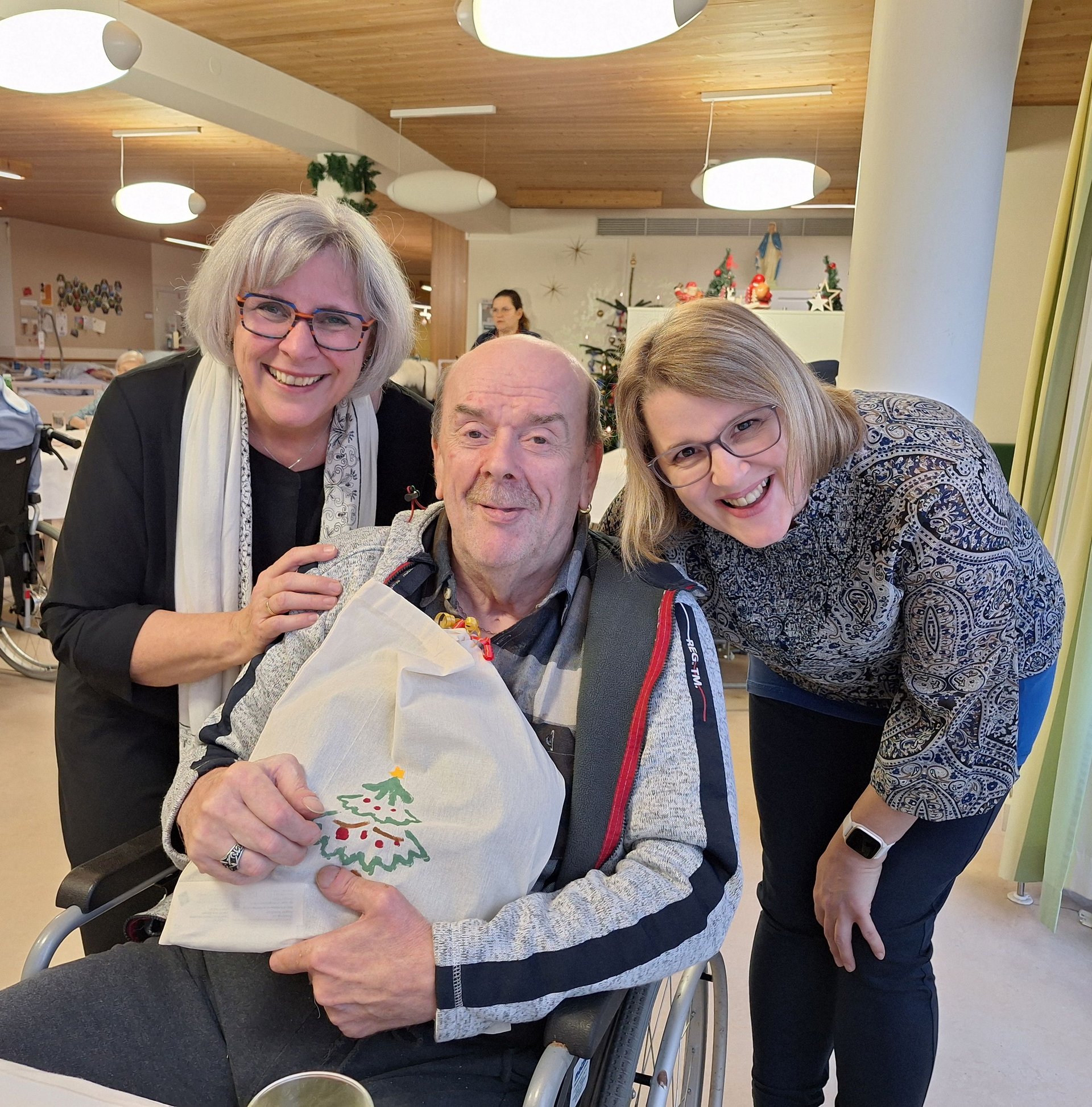 „Vom Himmel hoch, da komm ich her“ – so weit hatten es Pflegedirektorin Roswitha Astner und Kaufmännischer Direktor Rainer Hirschmann nicht, als sie mit den vielen Päckchen zu den Bewohnerinnen und Bewohnern gingen.