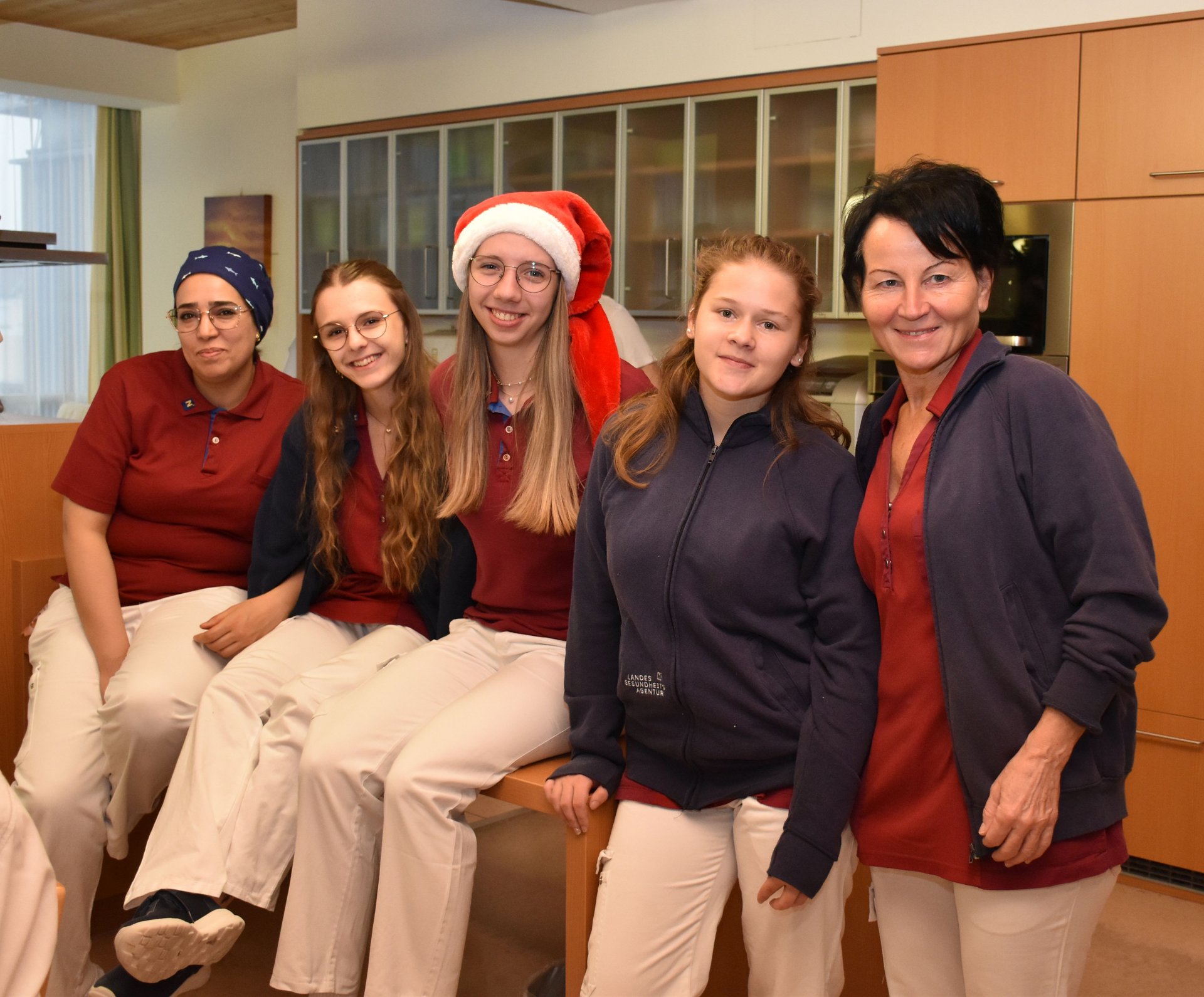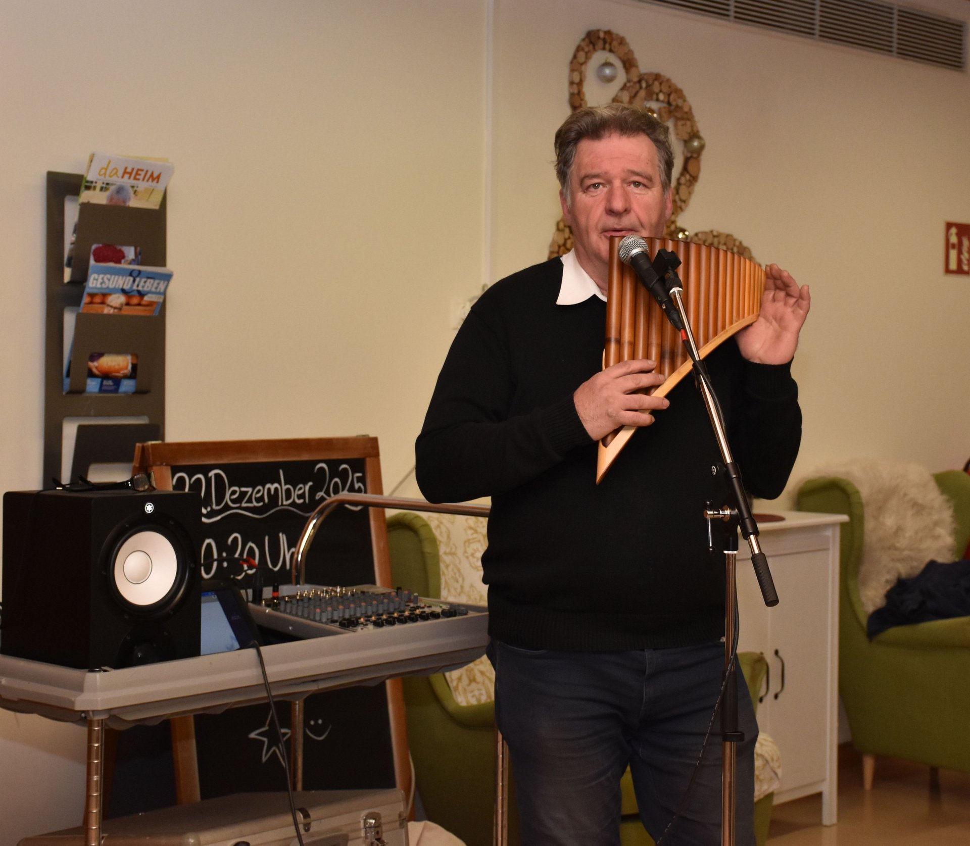 Die von allen sehr geschätzte Bewohner-Weihnachtsfeier wurde auch von einigen Gästen, wie Diakon Josef Trinko, Margit Biedermann von der Seelsorge, Rudolf Winglhofer mit seiner Panflöte und den Volksschulkindern mit Lehrkraft Maria Führer-Hochfellner, besucht. Sie alle halfen den „Christkinderln“ Roswitha und Rainer eine besonders schöne Atmosphäre zu schaffen, ein Umfeld, wo sich das Personal genauso dazusetzen und essen konnte wie jede Bewohnerin und jeder Bewohner des Hauses.