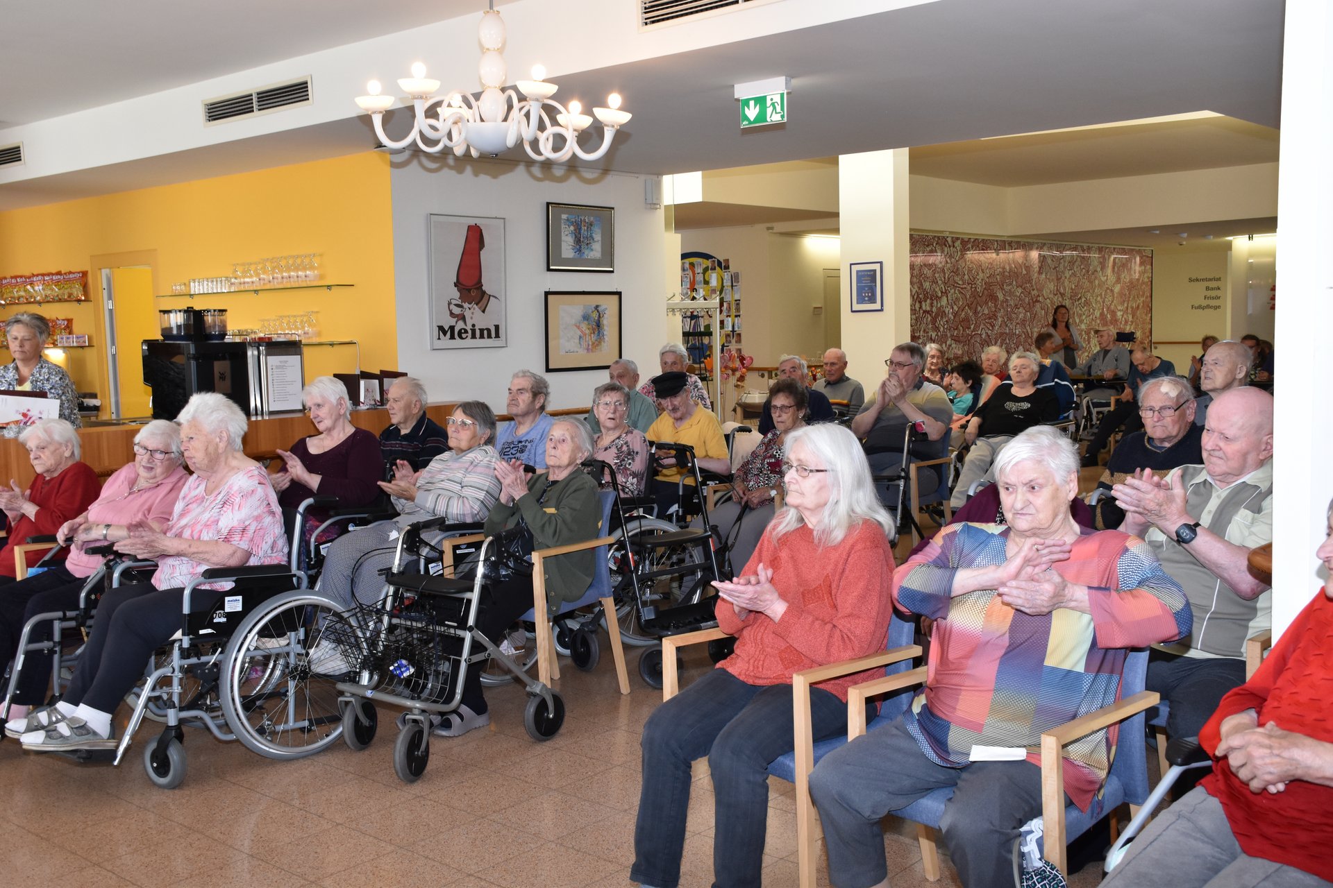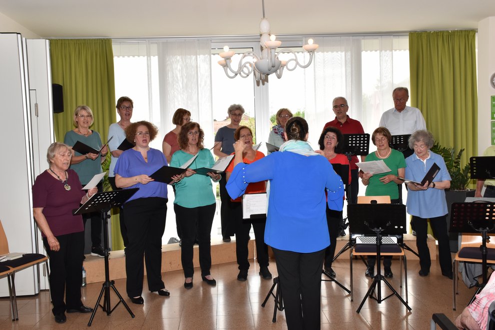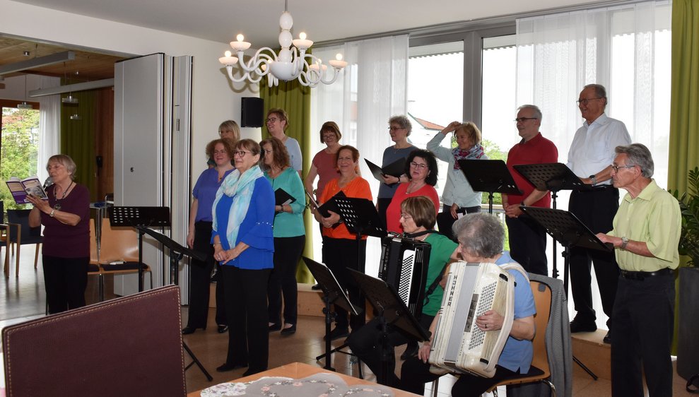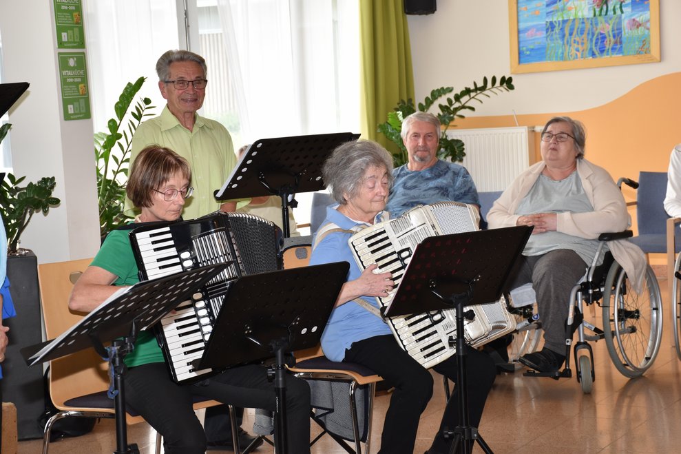 Nicht nur der Text zum Lied „Kemmts lei eina in die Stubn“ war einladend, das gesamte Konzert, unter der Leitung von Ilse Bernhard, war mitreißend und durch passende Texte, gelesen von Helga Reiter, auf ganzer Linie ein Erfolg. Bekannte Lieder motivierten die Bewohnerinnen und Bewohner zum Mitsingen und rührten auch zu Tränen. „Musik verbindet, Musik belebt und schenkt Erinnerungen“, erwähnte Managerin für Ehrenamt und Alltagsbegleitung Anita Talamas-Engel schon bei der Begrüßung und auch zum Schluss bei der Danksagung und das hat sich bewahrheitet. Es wird ein Wiedersehen geben und darauf freuen sich auch die Sängerinnen und Sänger, sowie Rosalinde Steinberger und Monika Öhlknecht, die das Konzert gekonnt mit dem Akkordeon begleitet haben.