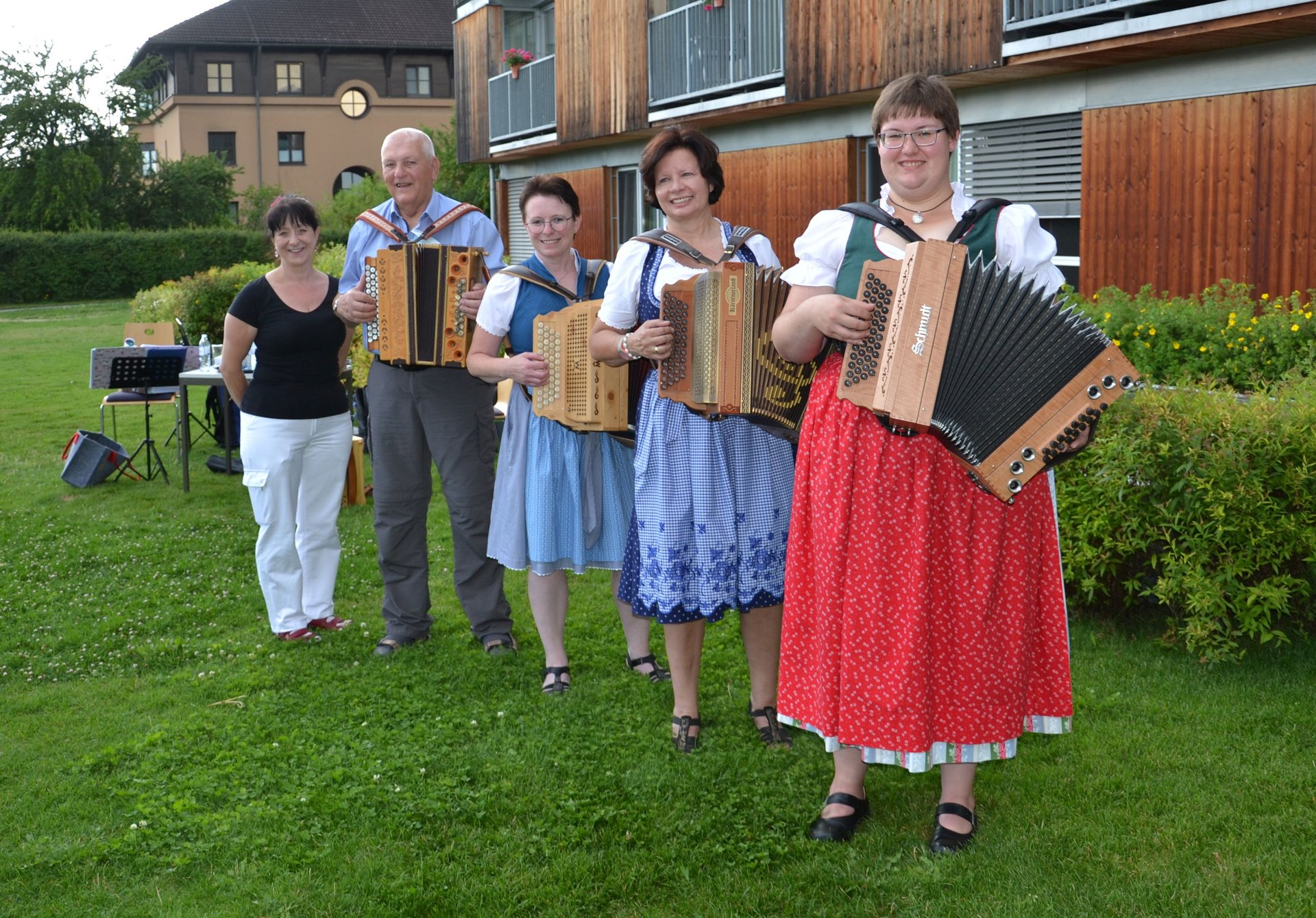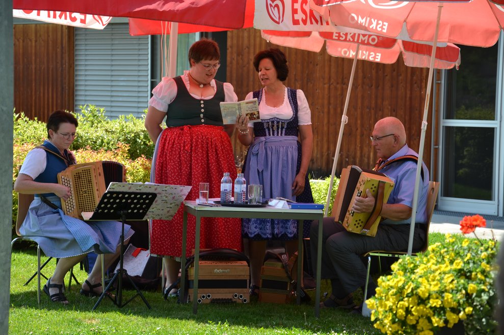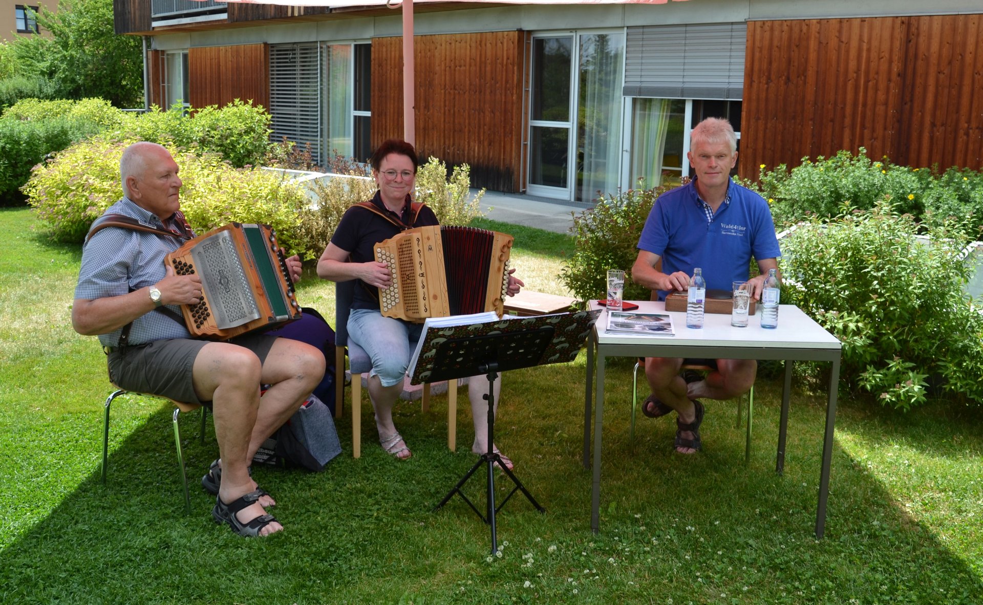Die Harmonika Musi, bestehend aus einigen neuen Ehrenamtlichen, spielten bei uns im Garten auf. Perfektes Wetter unterstützte die ausgelassene Stimmung. Viele neue Lieder haben Karin Hölzl und ihre Freunde dargebracht!