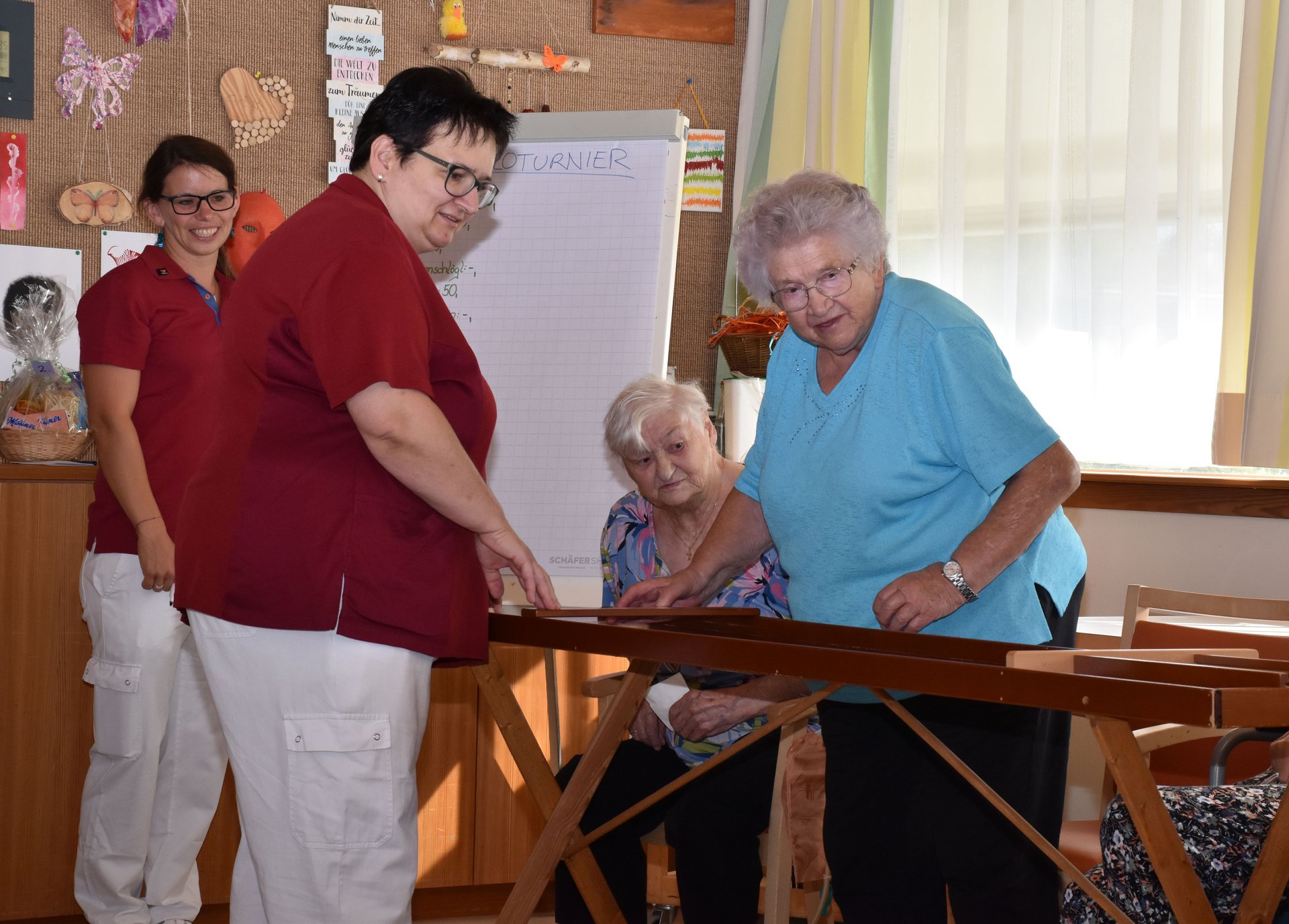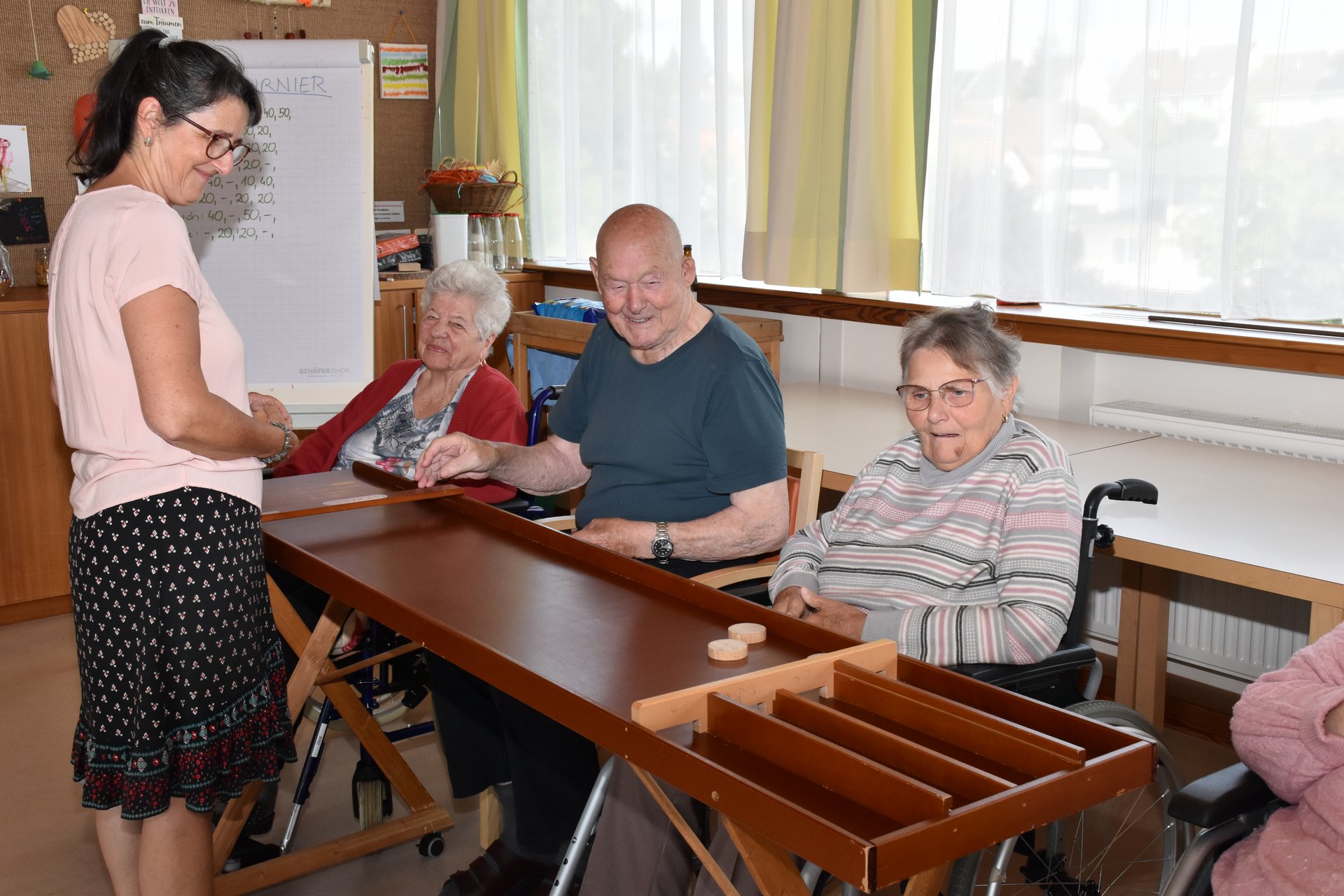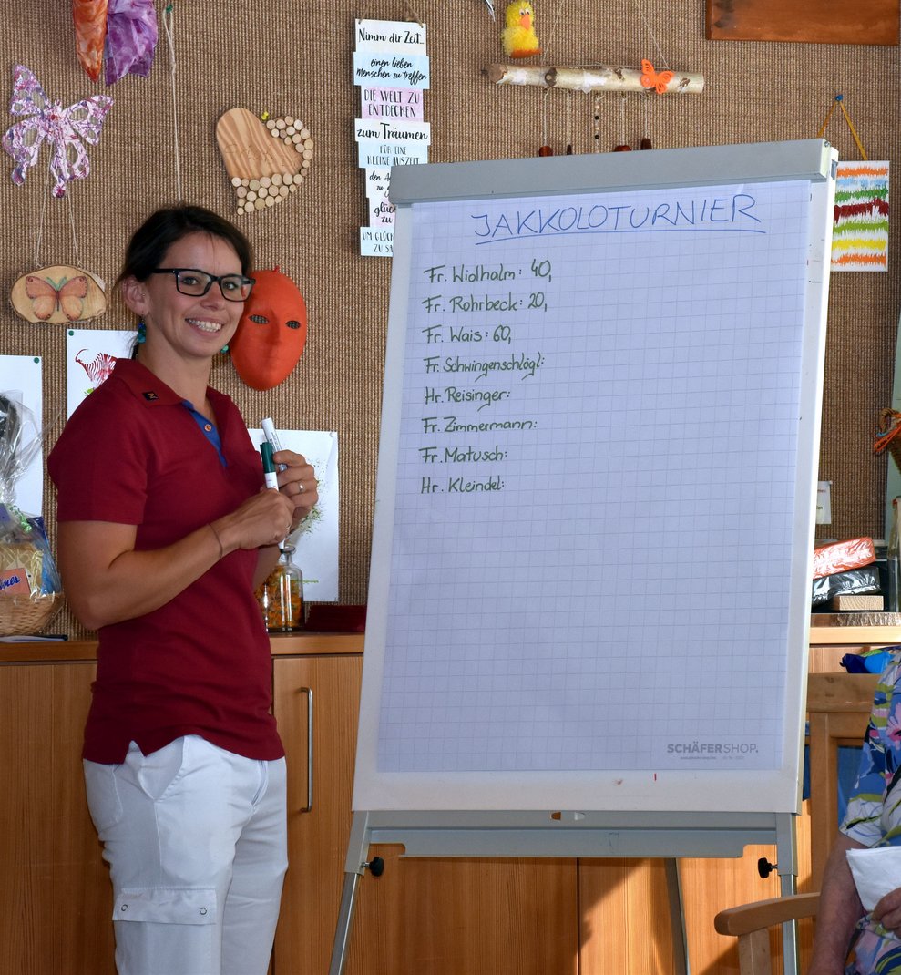 Wir organisierten für unsere Bewohnerinnen und Bewohner ein hausinternes Jakkoloturnier bei dem es auch kleine Geschenkskörbe zu gewinnen gab. Die Motivation war hoch und die Anzahl der Teilnehmer am Turnier ebenfalls. Wir haben fest die Daumen gehalten und jedem von Herzen gewunschen: "Glück auf!"