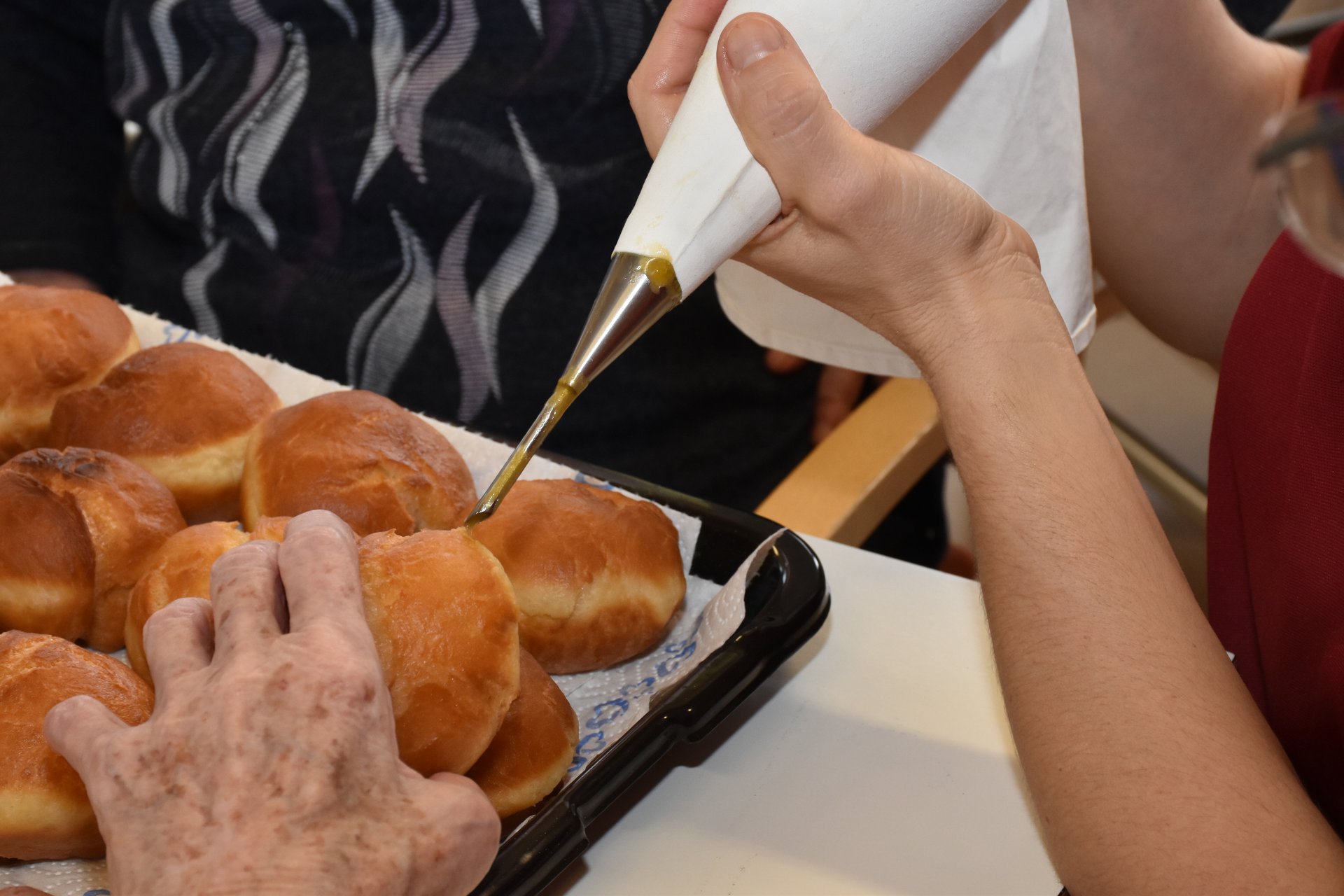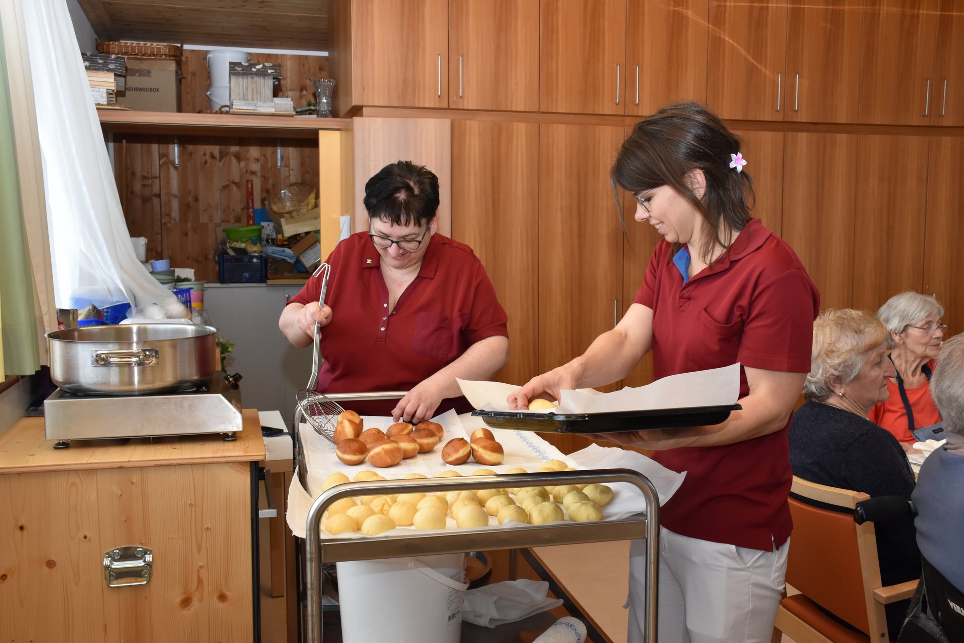 Früher aus Schmalz herausgebacken, haben wir uns für eine gesundheitsförderliche Alternative namens Öl entschieden. 5 Kilogramm Teig und geschickte Hände, die das “Schleifen” des Teiges noch beherrschen, waren die Voraussetzungen zum perfekten Krapfen. Die Marillenmarmelade tat ihr Übriges, um den Hochgenuss am Nachmittag mit Kaffee zu sichern!