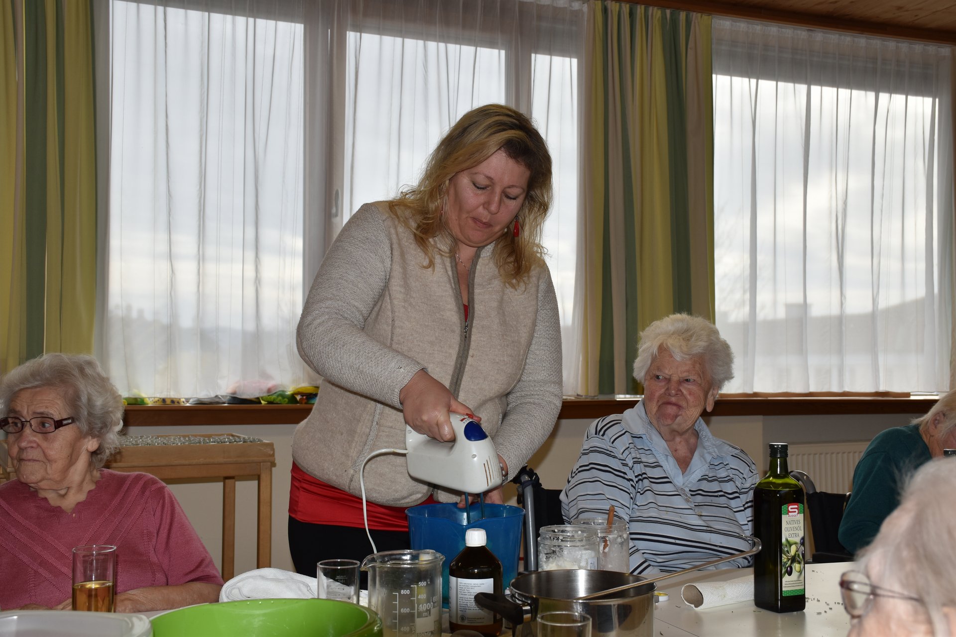 Das Kräuterwissen mit unserer Freiwilligen Mitarbeiterin Eunike Grahofer zu vertiefen und mit dem alten Wissen von Bewohnerinnen und Bewohner zu vermischen war unser Ziel an diesem Vormittag! Es war spannend gemeinsam eine Erkältungs- und Gelenksalbe und eine Hautpflegesalbe herzustellen! Unser Dank gilt Eunike und allen Freiwilligen Mitarbeiterinnen, Bewohnerinnen und Bewohner!