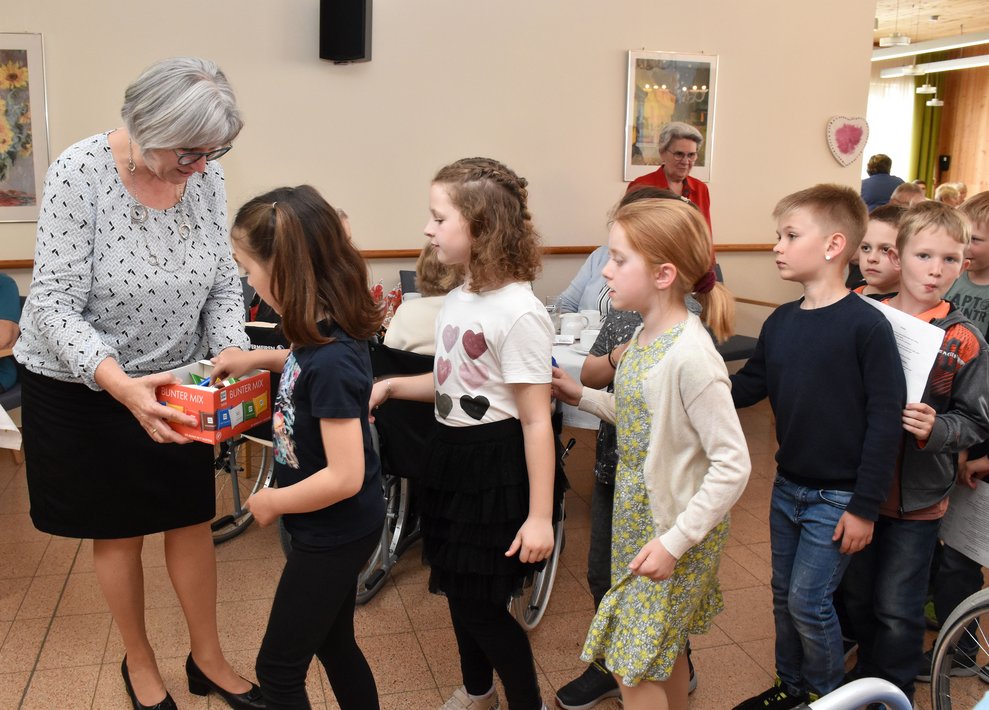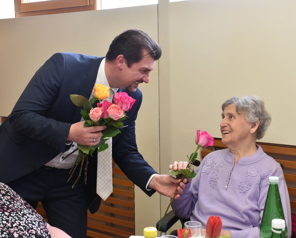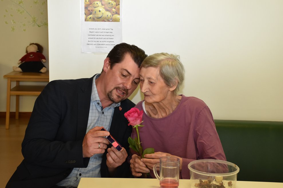 Muttertag: Wir denken an unsere Mütter und danken ihnen für all die Liebe und guten Taten, die uns Kindern zu Teil wurden! An diesem Tag verwöhnen wir die Muttis und verschenken Selbstgebasteltes und Blumen! Uns im Haus bedeuten die vielen Mamas, Omas und Uromas auch sehr viel und darum standen alle Bewohnerinnen im Mittelpunkt dieses Nachmittages! Die Kinder der Volksschule unterhielten unsere Damen mit Liedern und Gedichten und verteilten selbstgebastelte Geschenke! Als Gast durften wir die neue Bezirkshauptfrau von Waidhofen/Thaya, Frau Manuela Herzog, begrüßen. Gemeinsam mit Dir. Rainer Hirschmann verteilte sie Rosen und Schokoherzen an alle Bewohnerinnen, aber auch an unsere männlichen Bewohner.