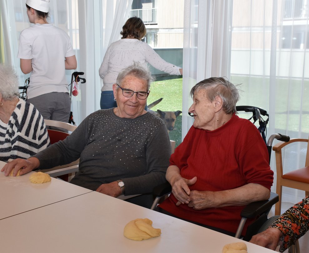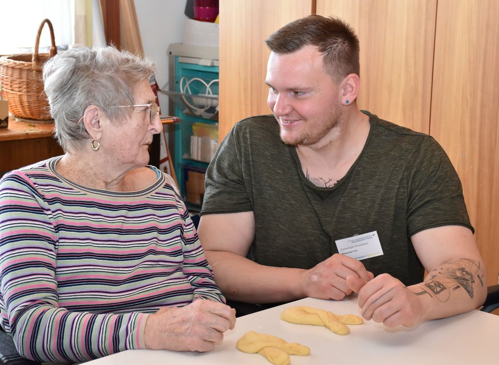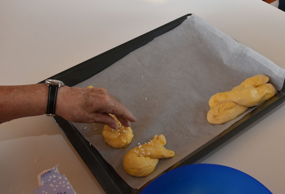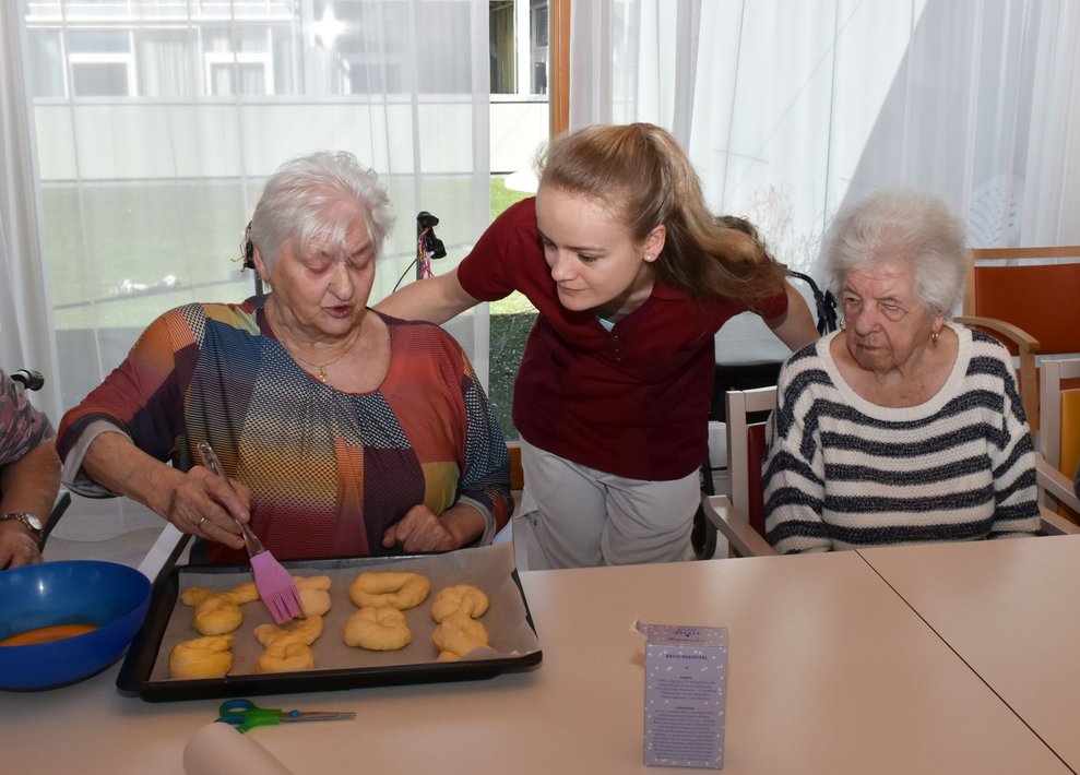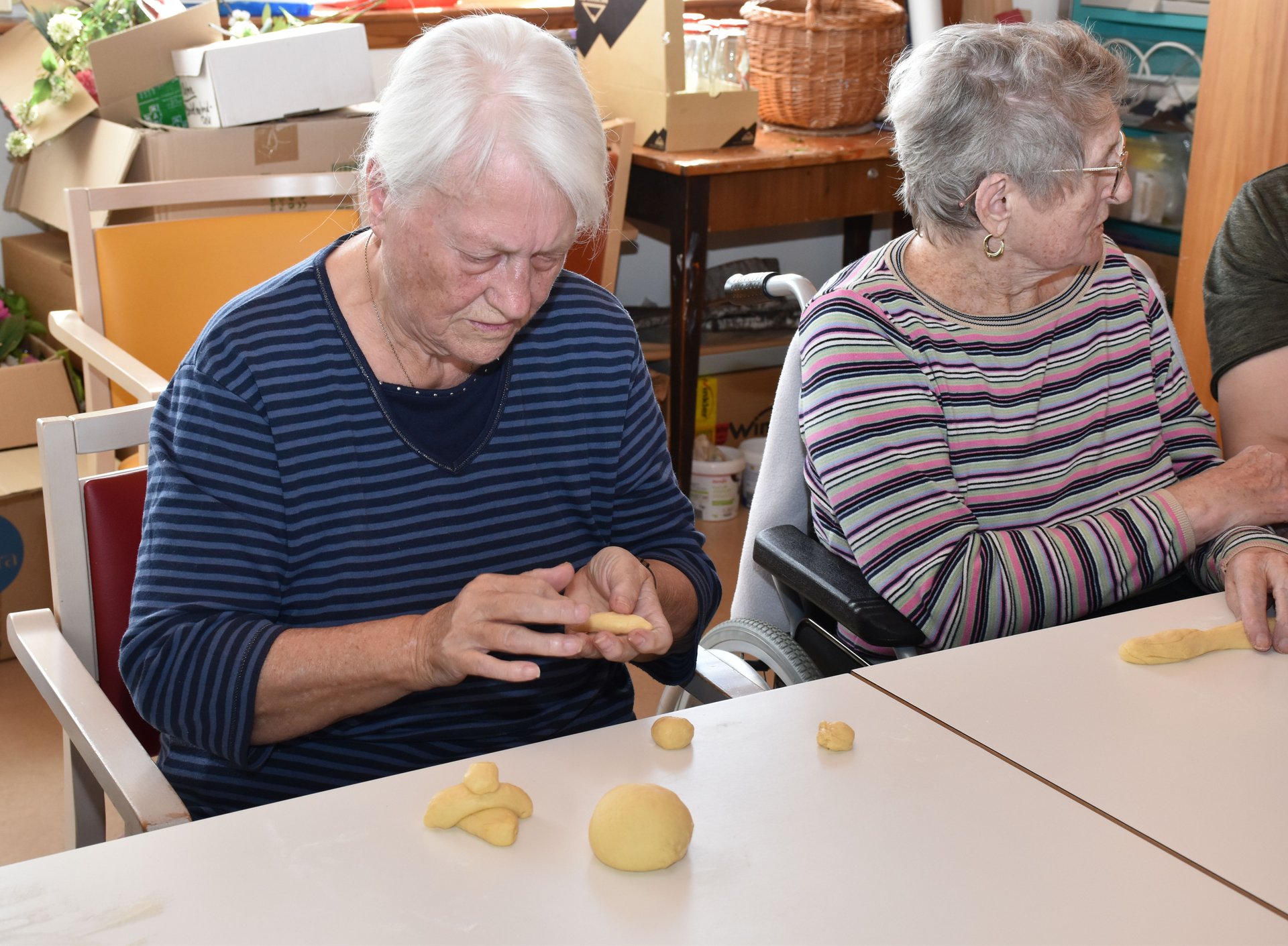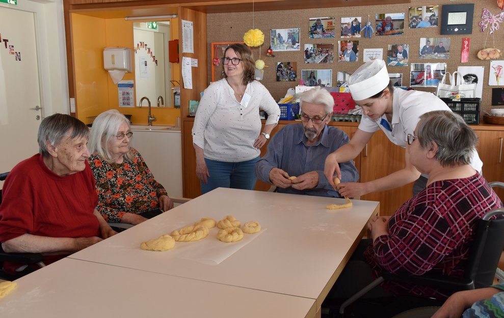 Osternester aus Germteig und mit Hagelzucker sind eine süße Köstlichkeit, die wir gerne gemeinsam mit unseren Bewohnerinnen und Bewohner backen! Wie sehr die Technik des Flechtens mit Teig noch bekannt ist, wird man im Laufe des Bildmaterials noch sehen! Geschicklichkeit ist auf alle Fälle gefragt, bei uns aber sowieso vorhanden!