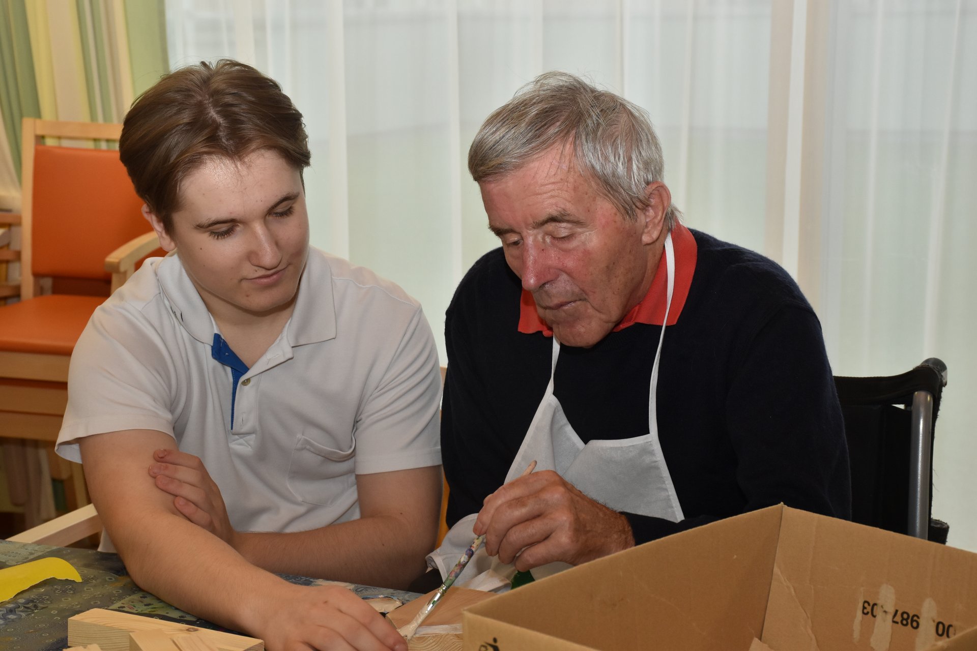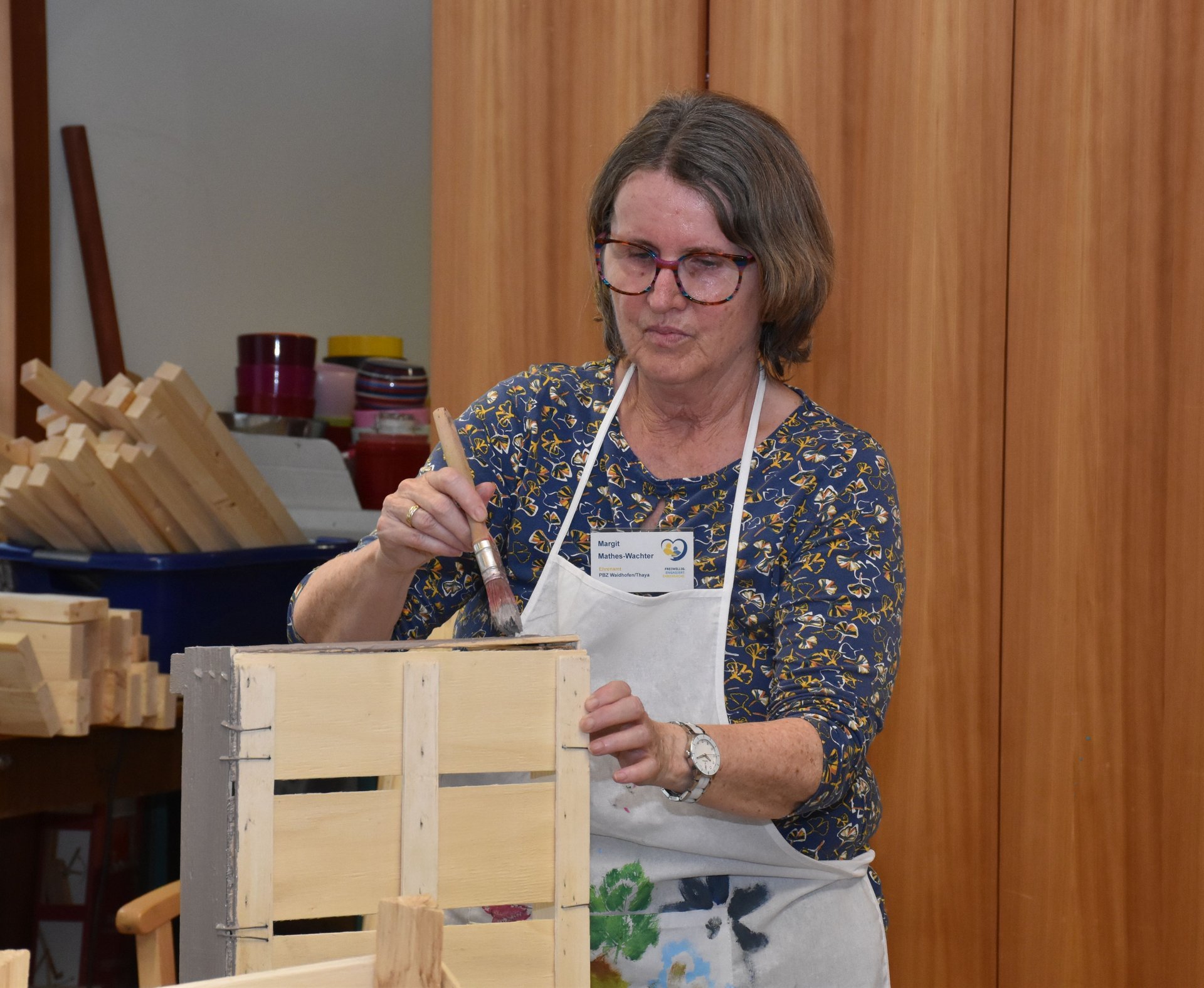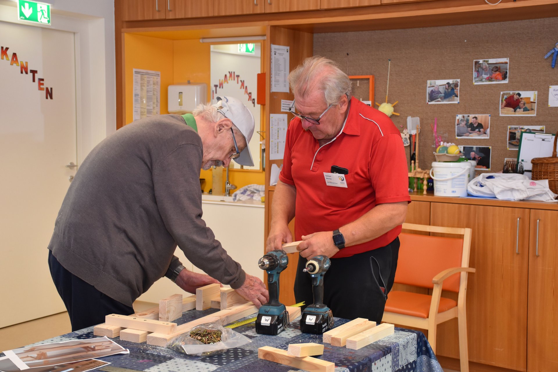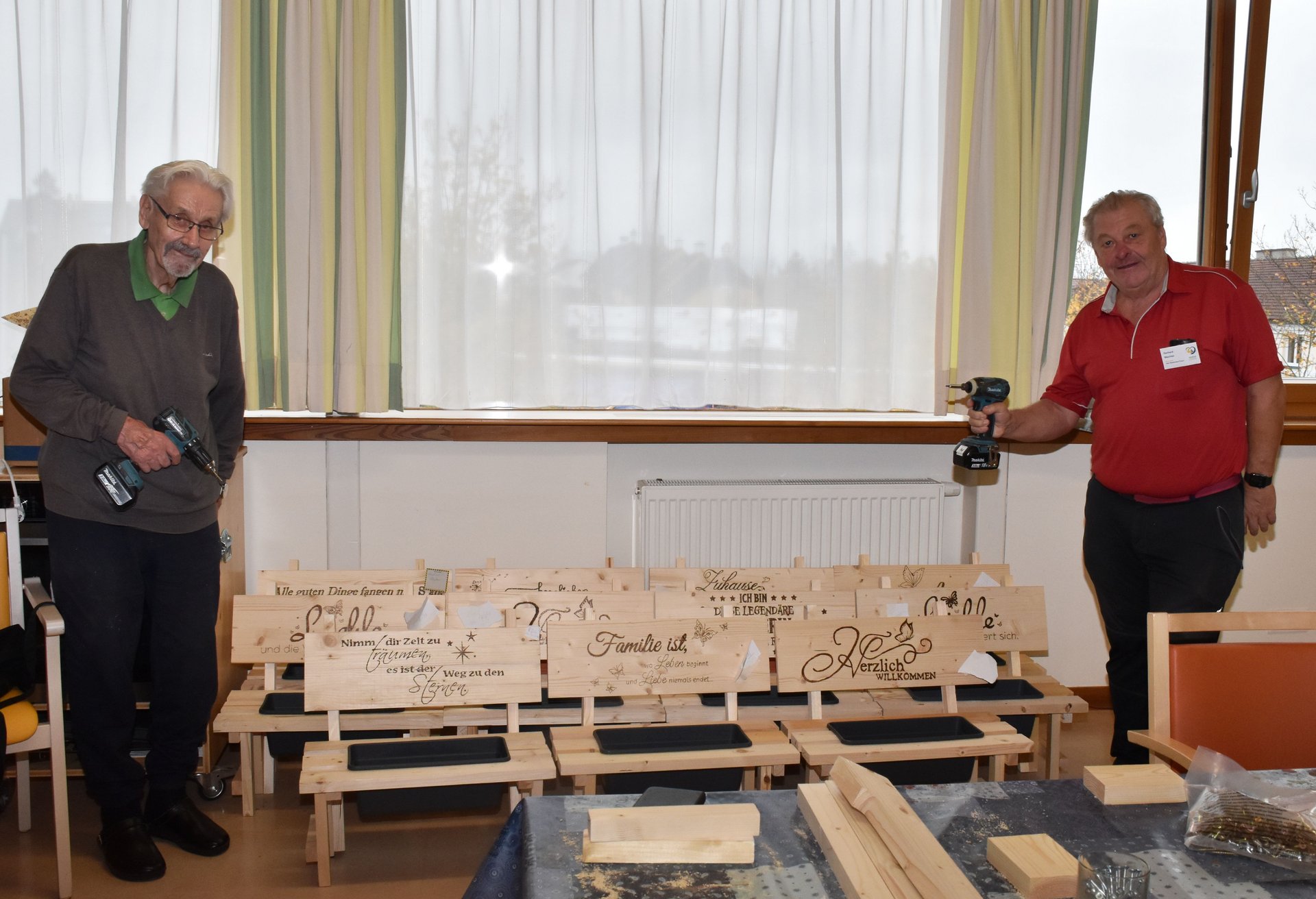 Holzbankerl selber bauen zwecks Deko, mit Blumen und auch noch mit eingebranntem Spruch - können wir das? Na klar, das ist machbar, und zwar weil wir unglaublich tolle und begabte Bewohnerinnen und Bewohner haben und diese auch noch optimale Unterstützung von geduldigen, treuen und ebenfalls begabten Ehrenamtlichen erhalten! Folgen Sie mir bitte in die Werkstatt, wo unsere Bankerl entstanden sind!