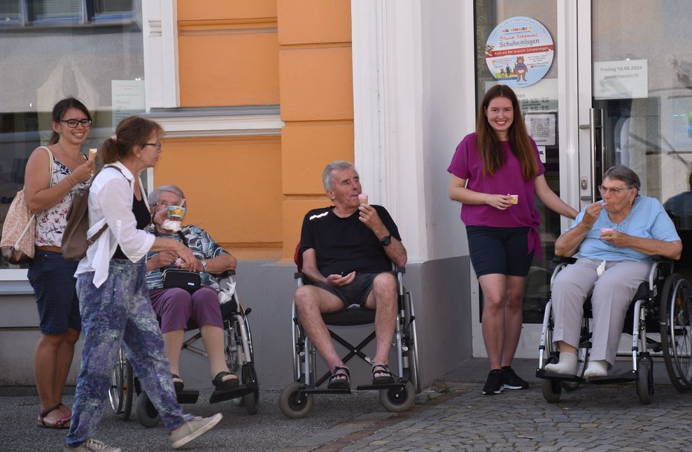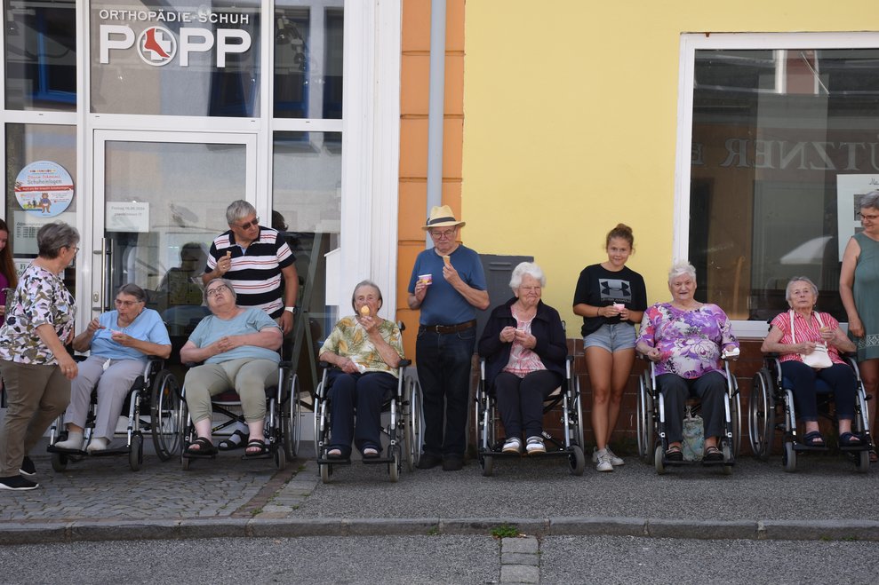 Die Rundfahrt durch die Stadt mit den Bewohnerinnen und Bewohner des PBZ Waidhofen/Thaya beinhaltete eine kurze Pause im Stadtpark, dann eine Besichtigung der Kirche und einen Abstecher zum Eis essen. Schließlich war es sehr interessant wieder einmal die Veränderungen der Geschäfte und Lokalitäten der Innenstadt zu sehen und bei der derzeitigen Hitze, ein Eis zu genießen! Vielen lieben Dank den vielen Ehrenamtlichen für die Begleitung!