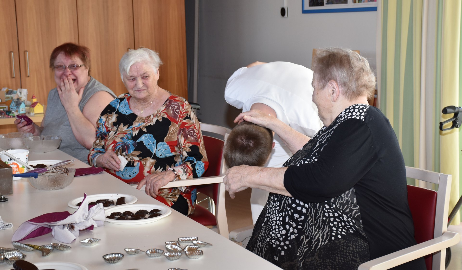 Unsere Uromas und Uropas haben früher genau so gerne genascht wie wir heute. Leider gab es Naschsachen nicht einfach so zu kaufen und darum wurde im Winter, speziell zu Weihnachten, Schokolade selber gemacht. Wir haben uns nach altem Vorbild und Rezept an die Arbeit gemacht und diese zartschmelzende Köstlichkeit mit unseren Bewohnerinnen und Bewohnern nachgemacht! Gott sei Dank hatten wir auch genug Schnee vorm Haus!