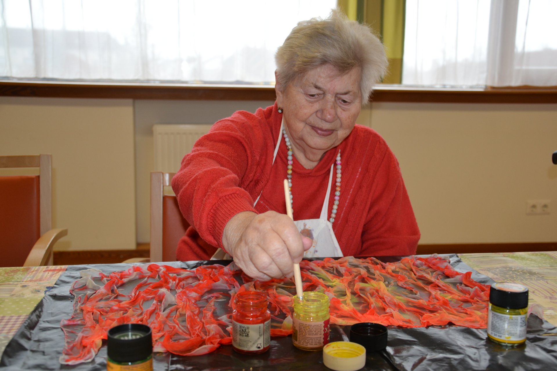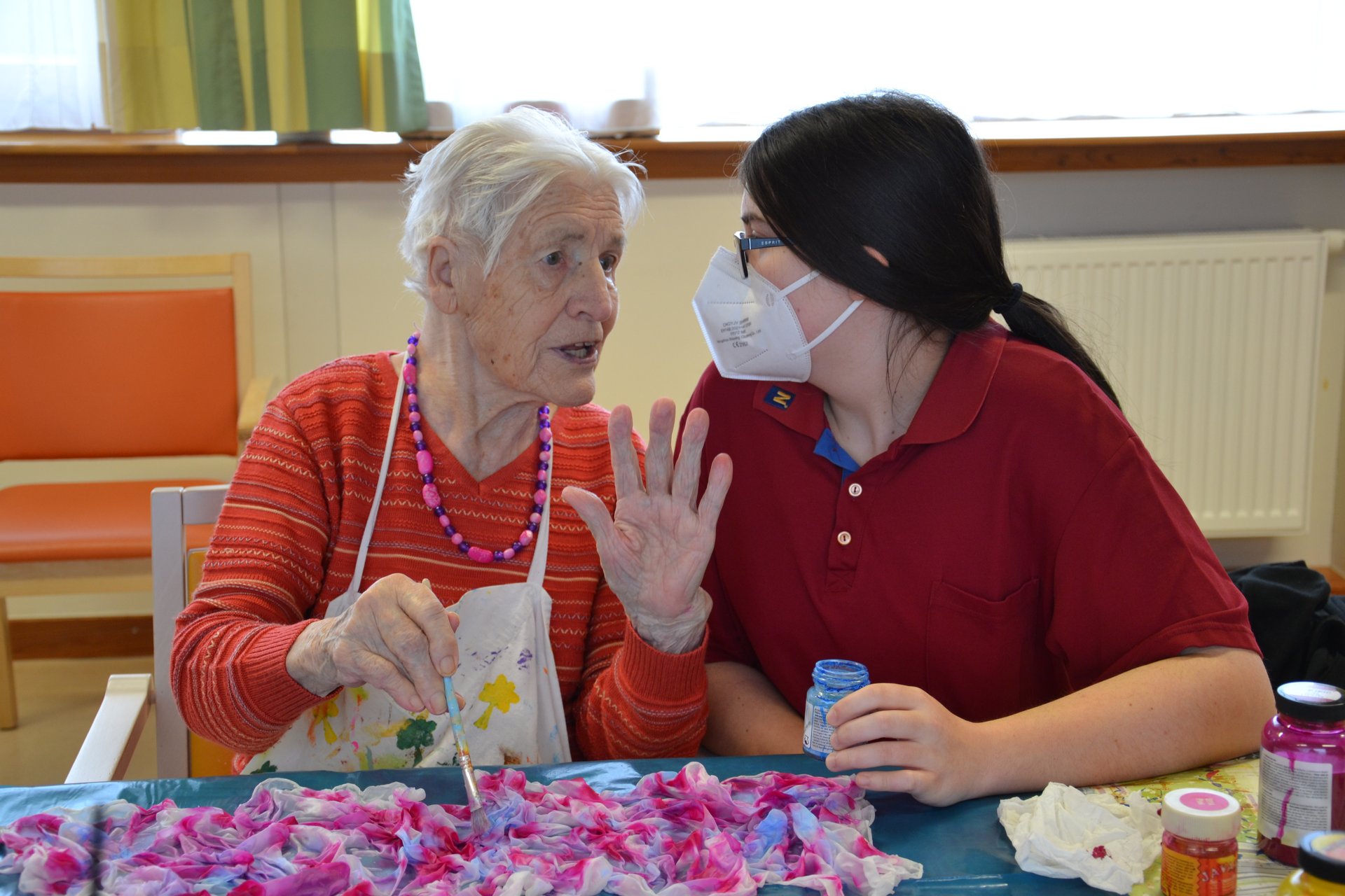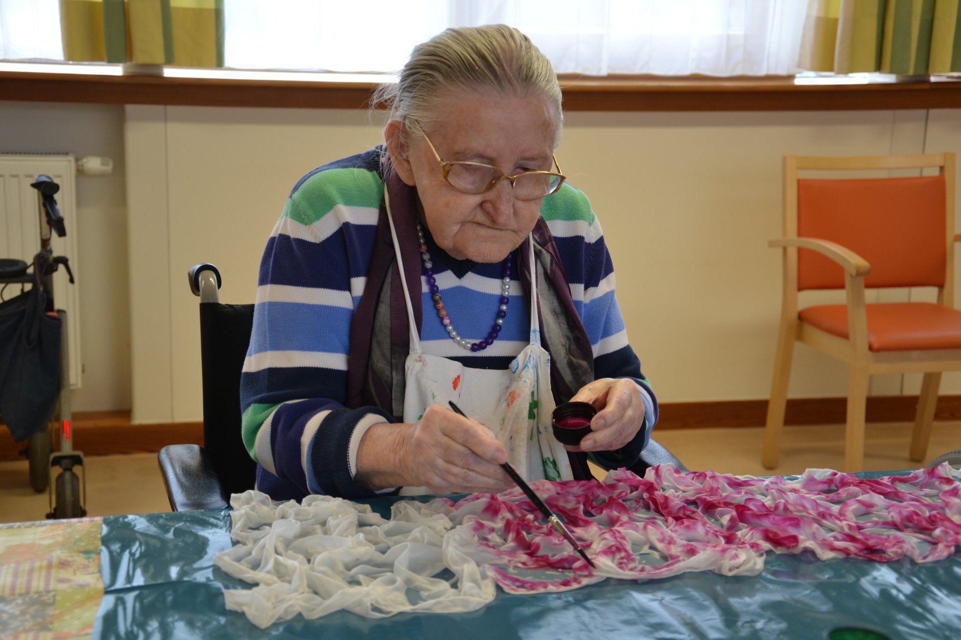 Wir stellen die Seidenschal-Kreationen unserer Bewohnerinnen und Bewohner vor.
