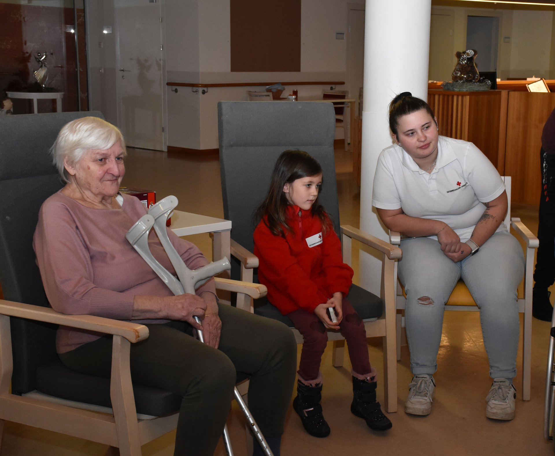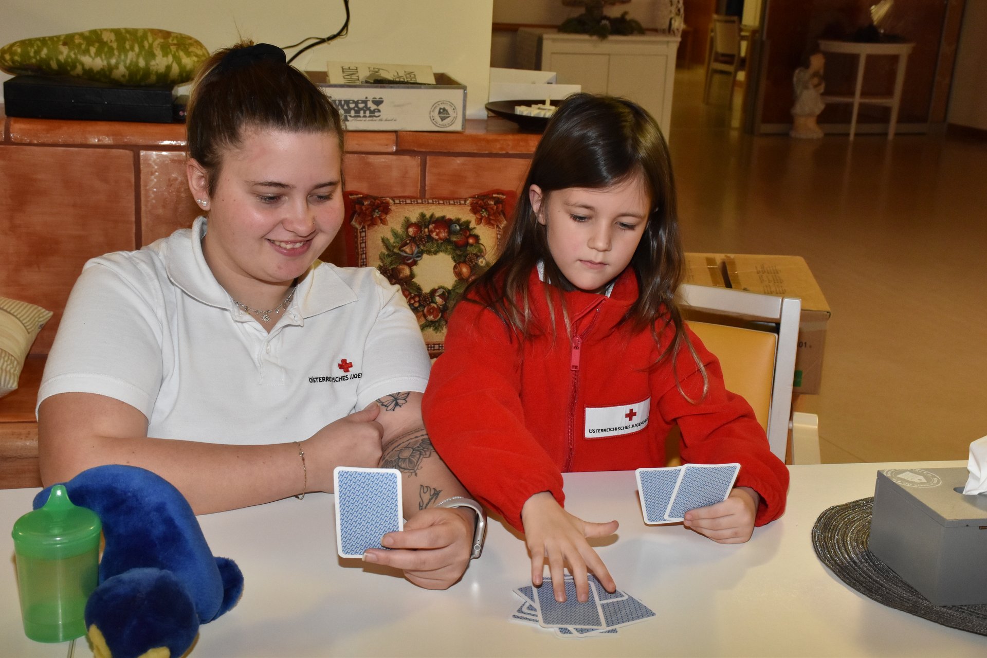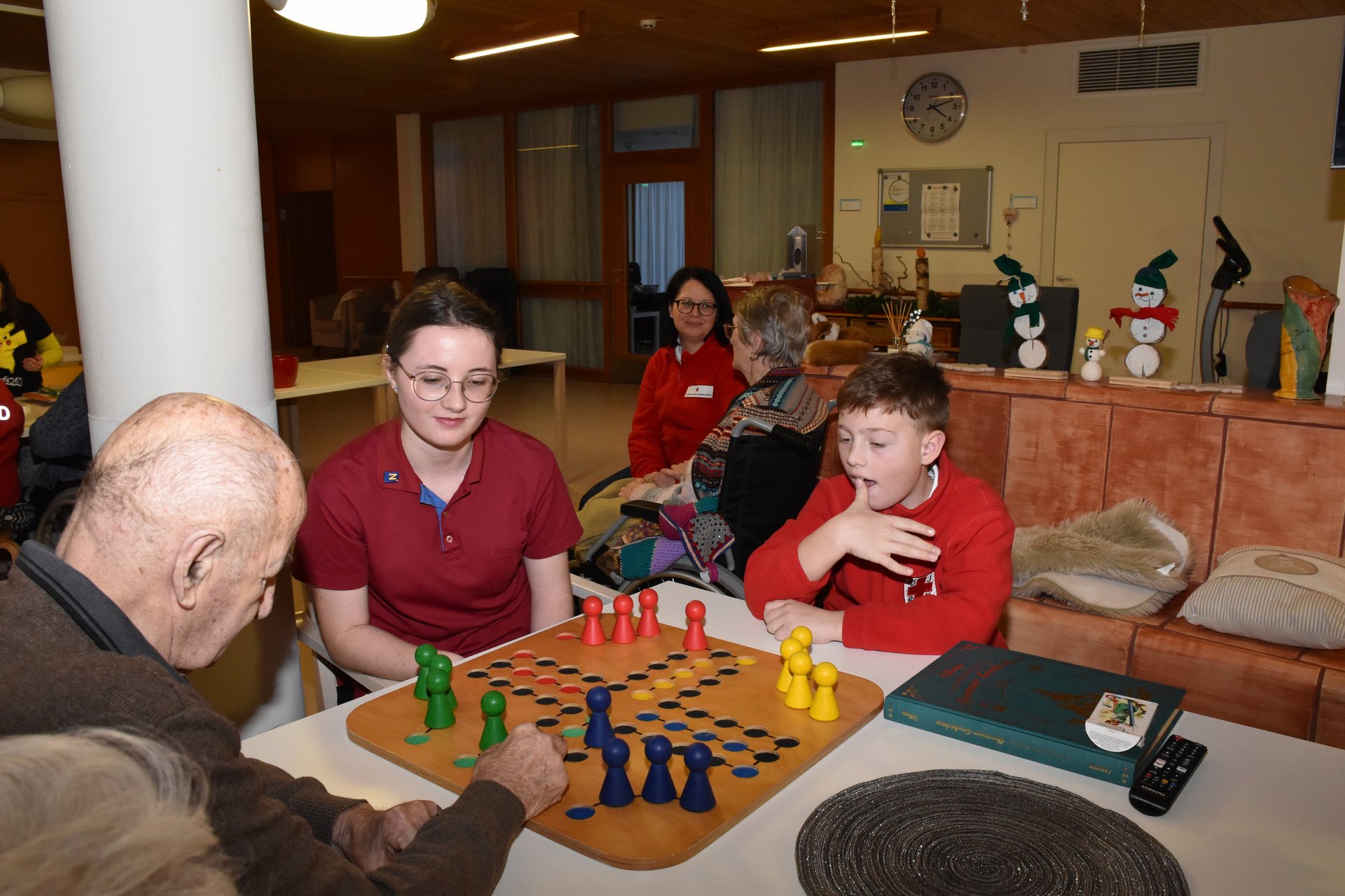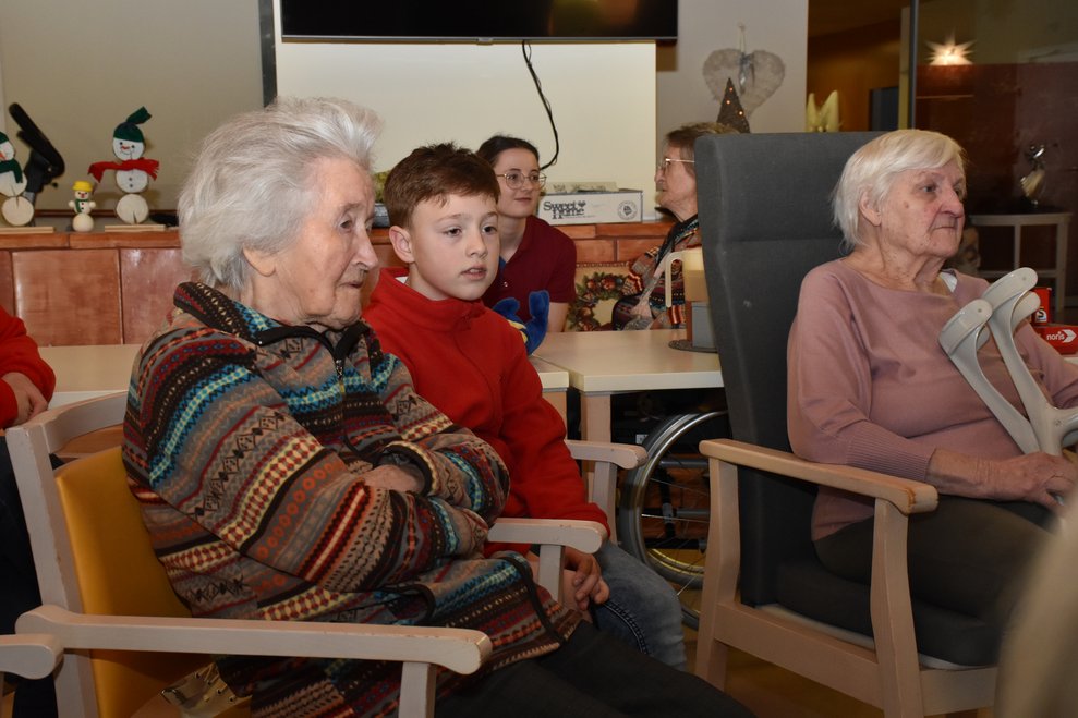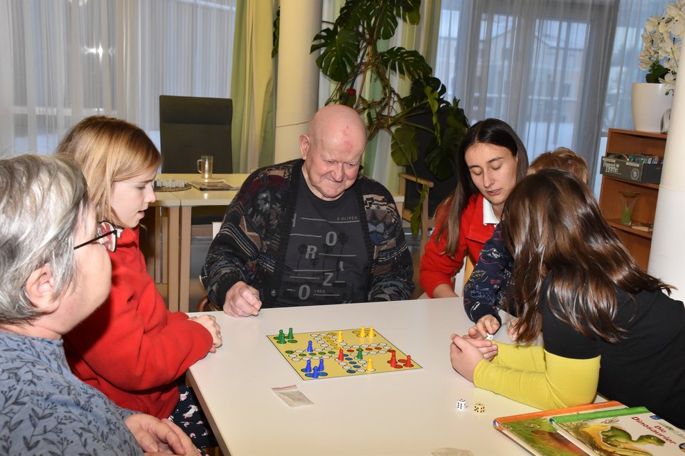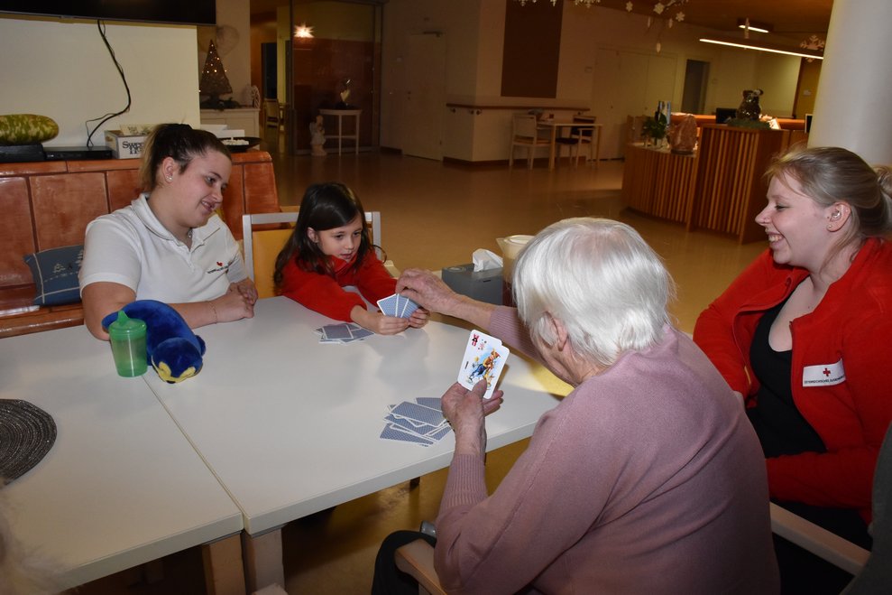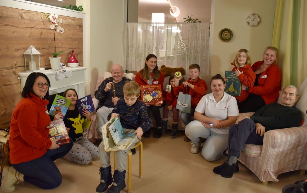 Im Jugendrotkreuz-Jahr der Jugendgruppen „Rot Kreuz Schäfchen“ und „Red Cross Sheep“ dreht sich alles um das Thema „Soziales Engagement“. Die Kinder zwischen 5 und 14 Jahren lernen, in welchen Bereichen sie schon von klein auf einen großen Beitrag leisten können. Bei der Weihnachtsfeier, die gemeinsam mit dem Seniorentreff des Gesundheits- und Sozialdienstes Waidhofen/Thaya stattgefunden hat, wurden über 100 Weihnachtskarten von den Kindern gebastelt. Diese durften sie dann voller Stolz, kurz vor Weihnachten, den Bewohnerinnen und Bewohnern des PBZ Waidhofen/Thaya bei einem Besuch schenken. Im neuen Jahr besuchten die Kinder das PBZ Waidhofen/Thaya noch einmal und brachten ihre Lieblingsbücher und -spiele mit. Im Sesselkreis beim Kamin haben die Kinder aus ihren Büchern vorgelesen. Danach blieb auch noch Zeit fürs gemeinsame Mensch-ärgere-dich-nicht spielen. Wie man auf den Fotos sehen kann, war diese Erfahrung für alle Beteiligten eine große Freude.