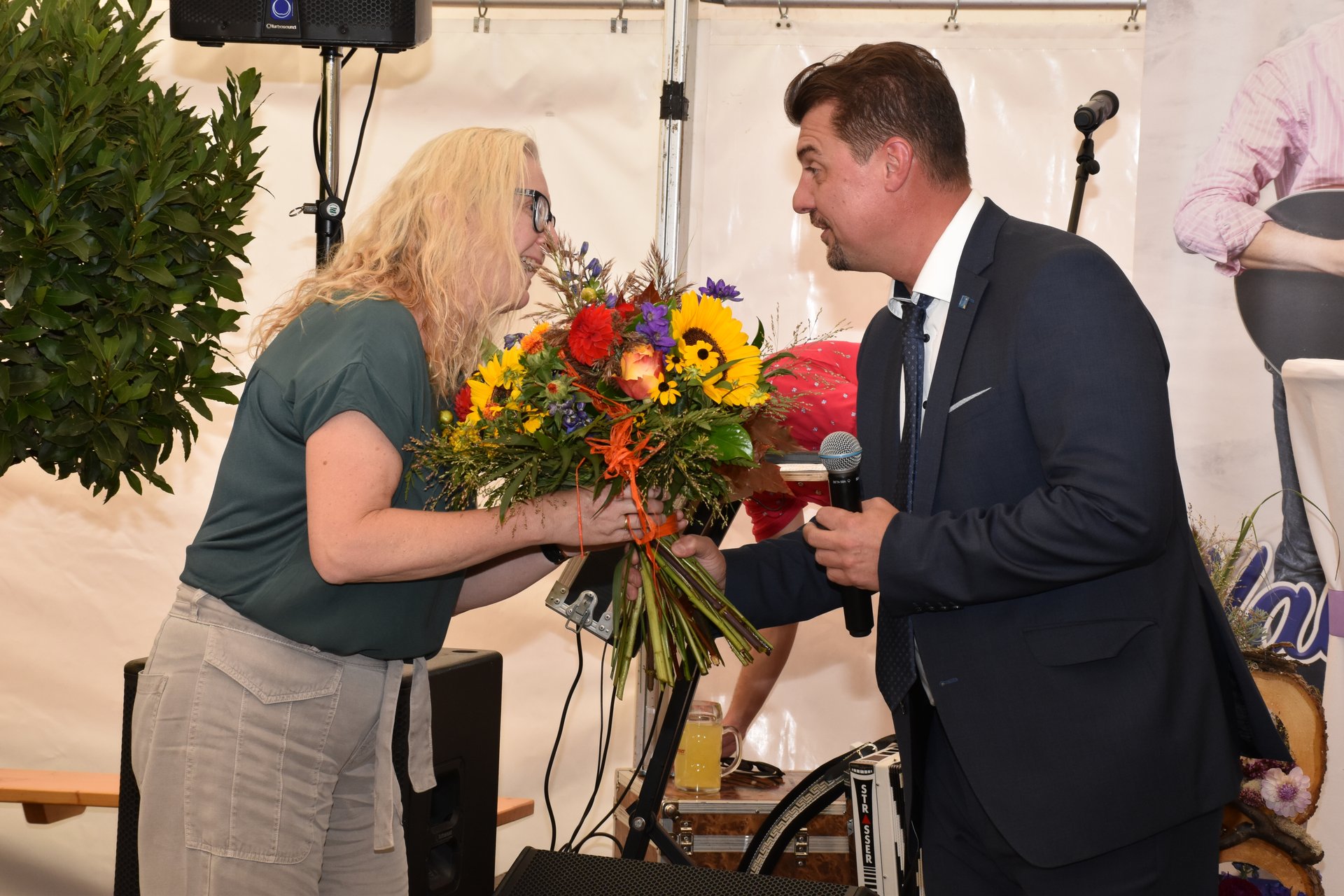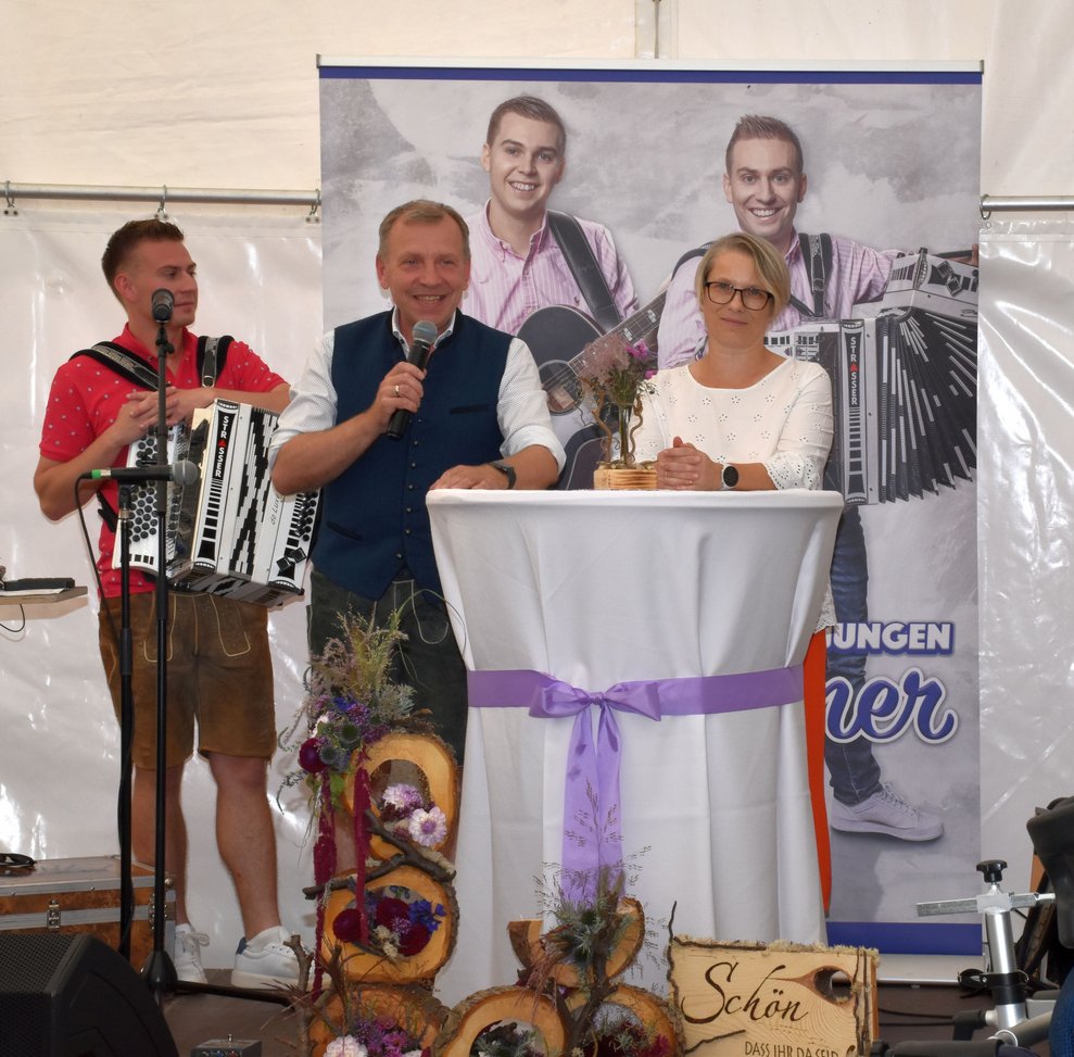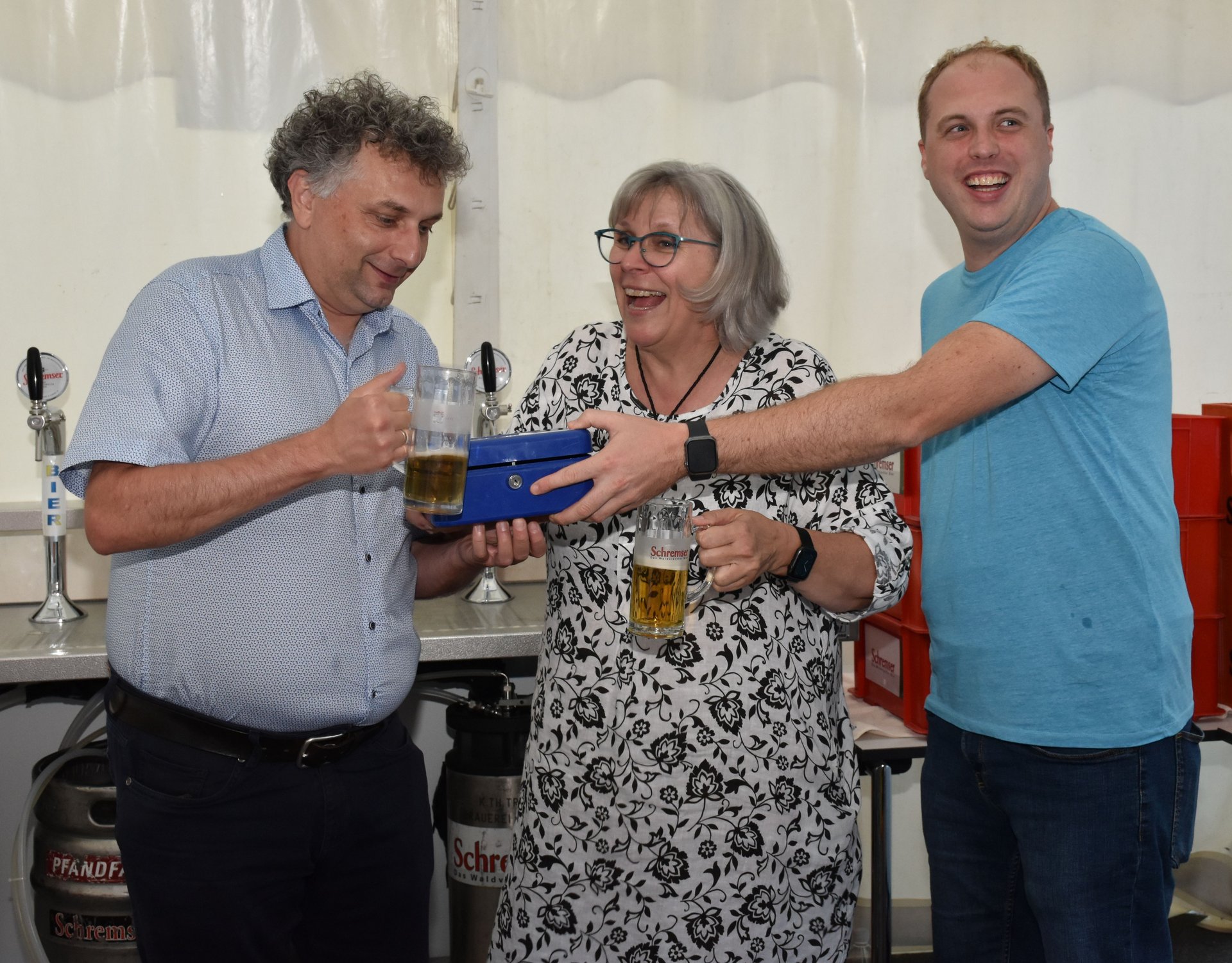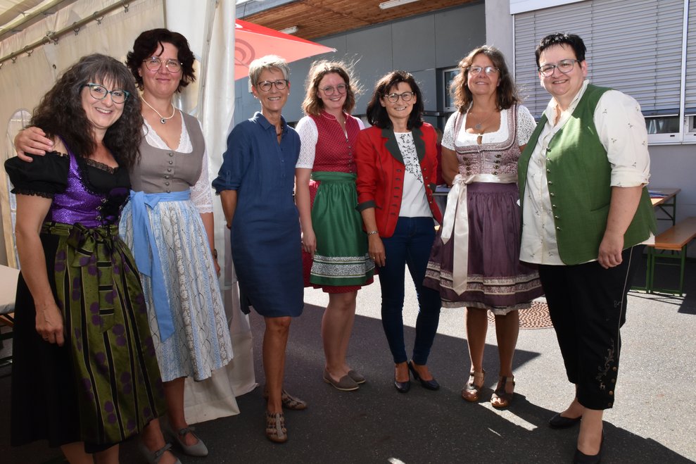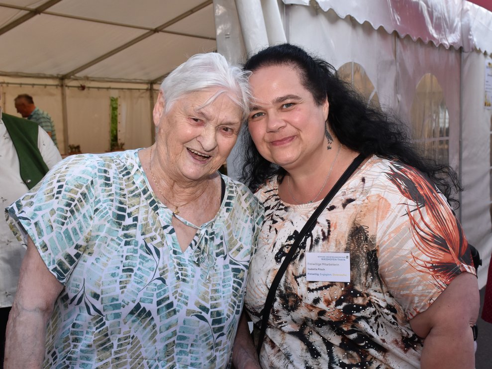 Natürlich waren zudem auch einige wichtige Elemente erforderlich: Ein schützendes Zeltdach über dem Kopf, schmackhaftes Essen für alle, eine Ausschank und eine Weinbar, um den Gaumen zu verwöhnen. Die Hauptzutaten im Haus waren die Anwesenheit unseres kaufmännischen Direktors Rainer Hirschmann und der Pflegedirektorin Roswitha Astner. Die perfekte Mischung an Ehrengästen und die Teilnahme vieler Bewohnerinnen und Bewohner sowie ihrer Angehörigen verstärkten den besonderen Geschmack des Festes. Diese Formel trug zum entspannten Ablauf des Festes bei, bei dem auch Kolleginnen in den Ruhestand verabschiedet und die langjährige Zusammenarbeit mit der Kindergartenleitung Jutta Gary gewürdigt wurden. Außerdem konnte die neue Leiterin, Ulli Bayer, begrüßt werden.