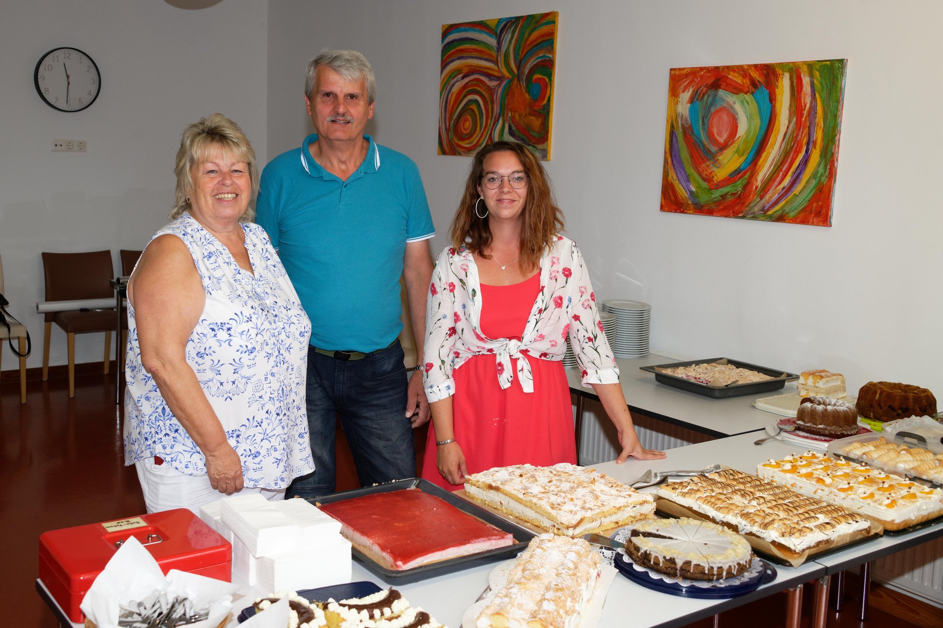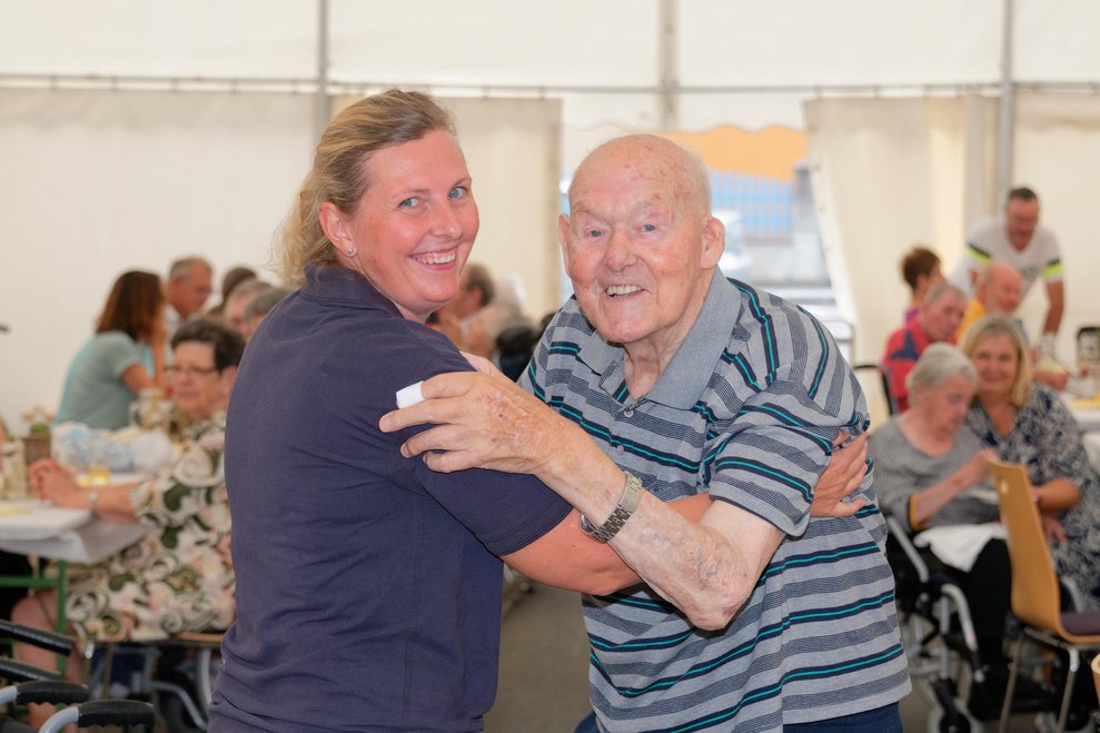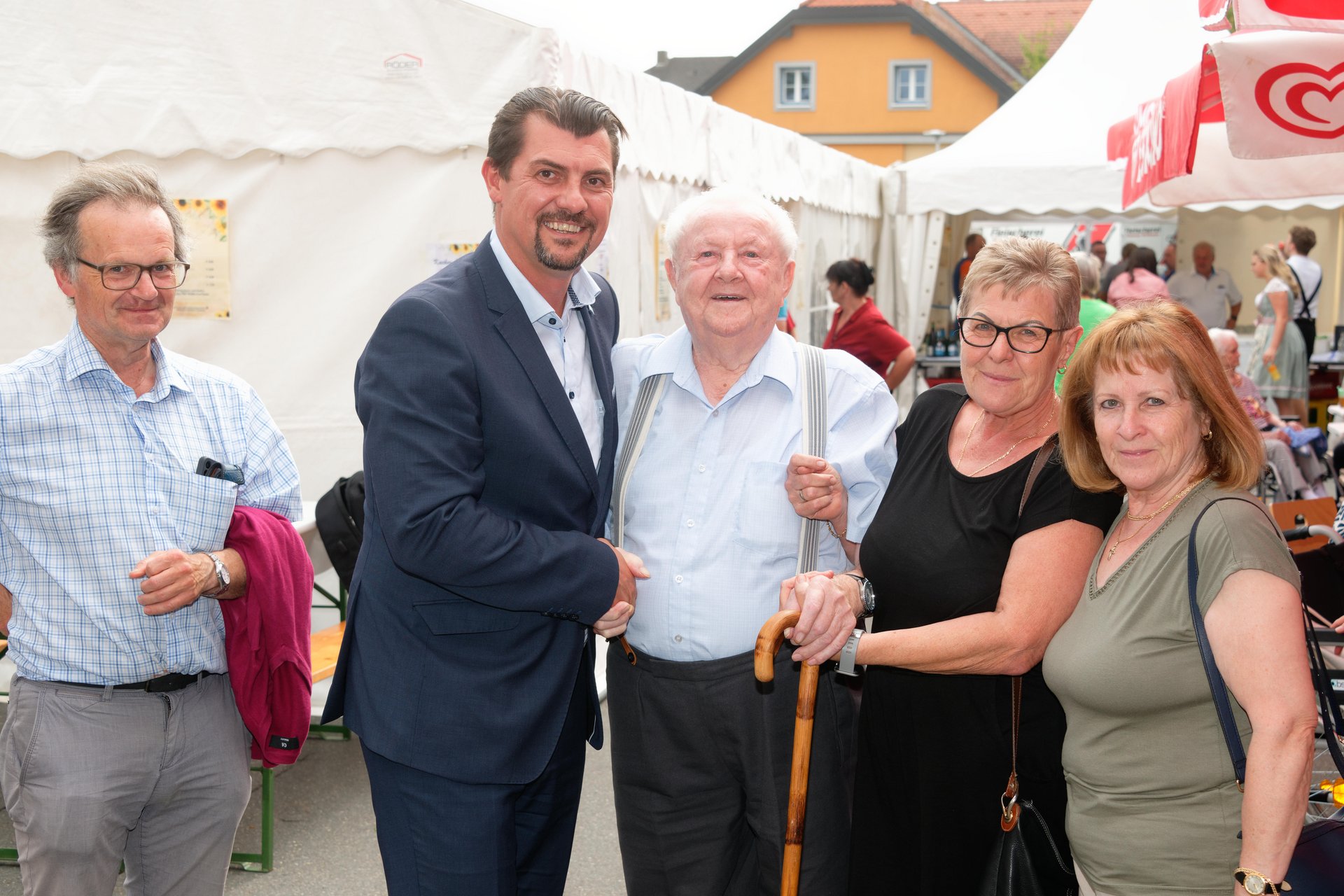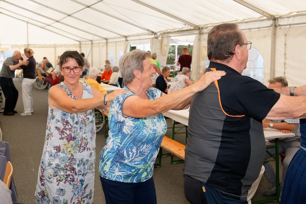 In diesem Jahr fand erstmals der Spätsommerfrühschoppen statt und ersetzte damit das traditionelle Spätsommerfest. Begleitet von der Musikgruppe „Freindschoft“, die Band aus dem Waldviertel, die für die perfekte musikalische Umrahmung sorgte, wurde das Lied „Wir sind eine große Familie“ angestimmt. Dabei sangen nicht nur Ehrenamtliche, Personal und Bewohnerinnen und Bewohner mit, sondern auch die Angehörigen und es entwickelte sich eine überaus heitere und ausgelassene Stimmung. Kulinarisch wurden die Gäste bestens mit Leckereien vom Grill und einem reichhaltigen Kuchenbuffet verwöhnt. Der reibungslose Ablauf des Festes wurde durch die engagierten Mitarbeiterinnen und Mitarbeiter des PBZ und die zahlreichen Ehrenamtlichen möglich gemacht, die in allen Bereichen tatkräftig mithalfen.