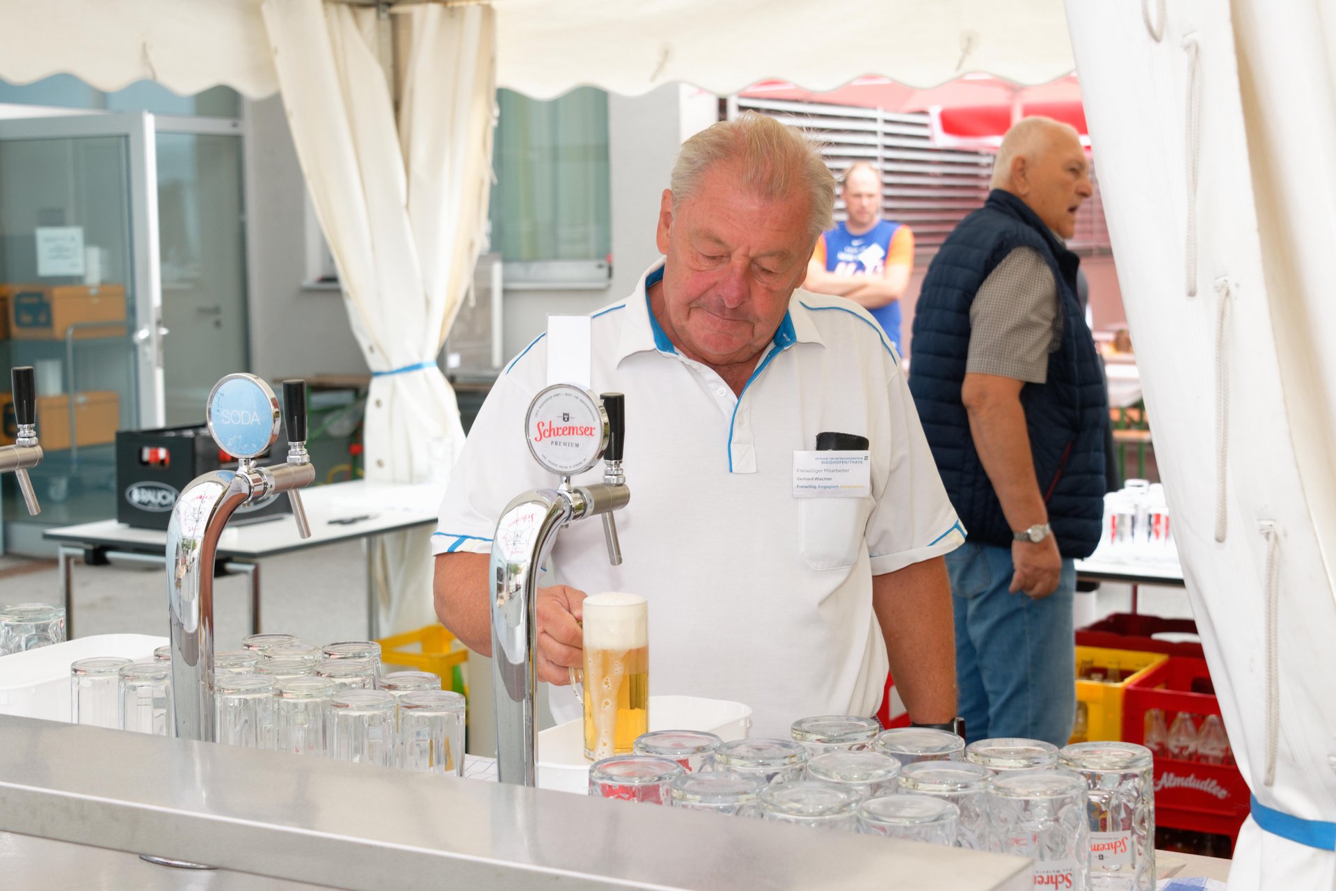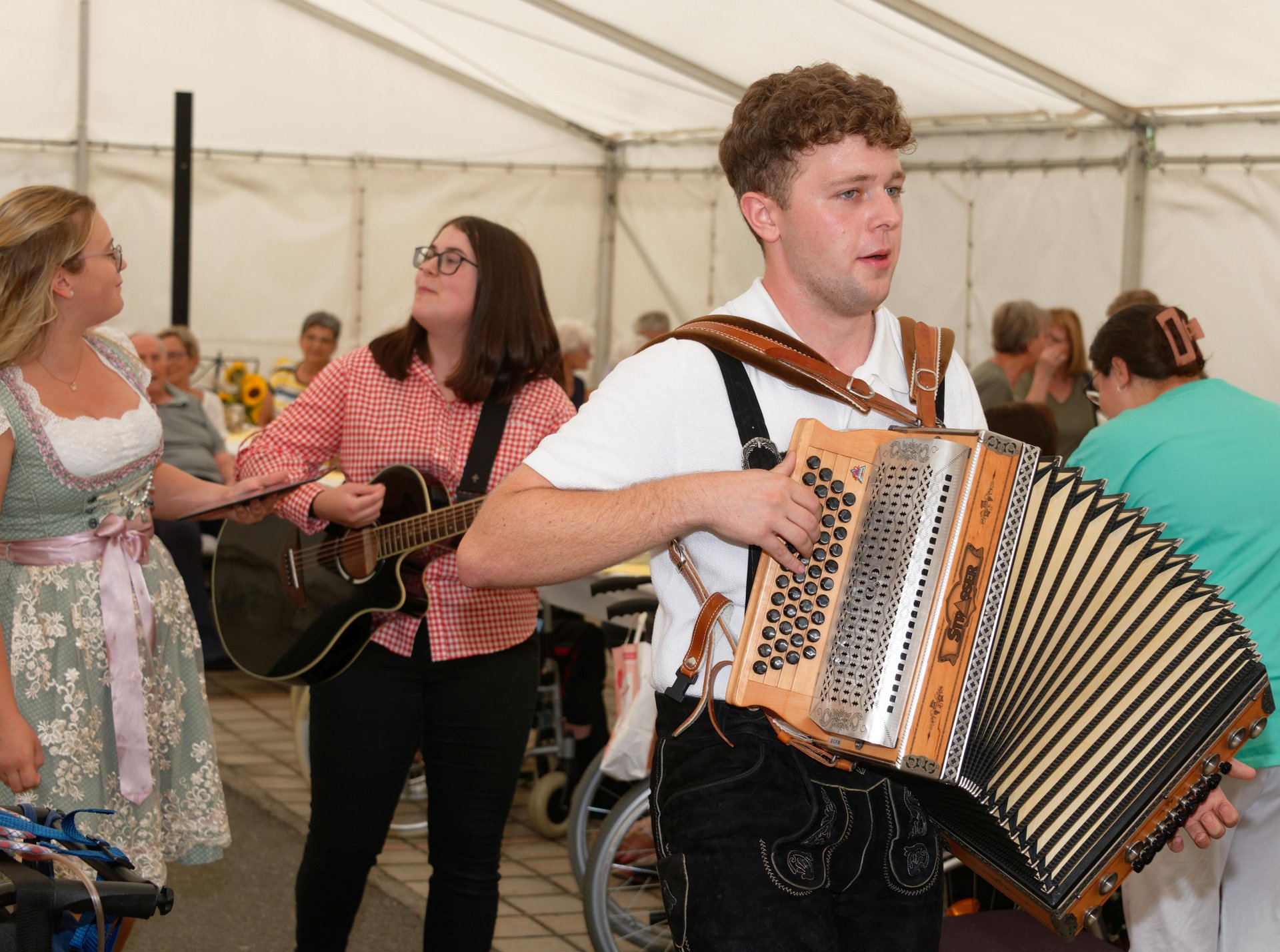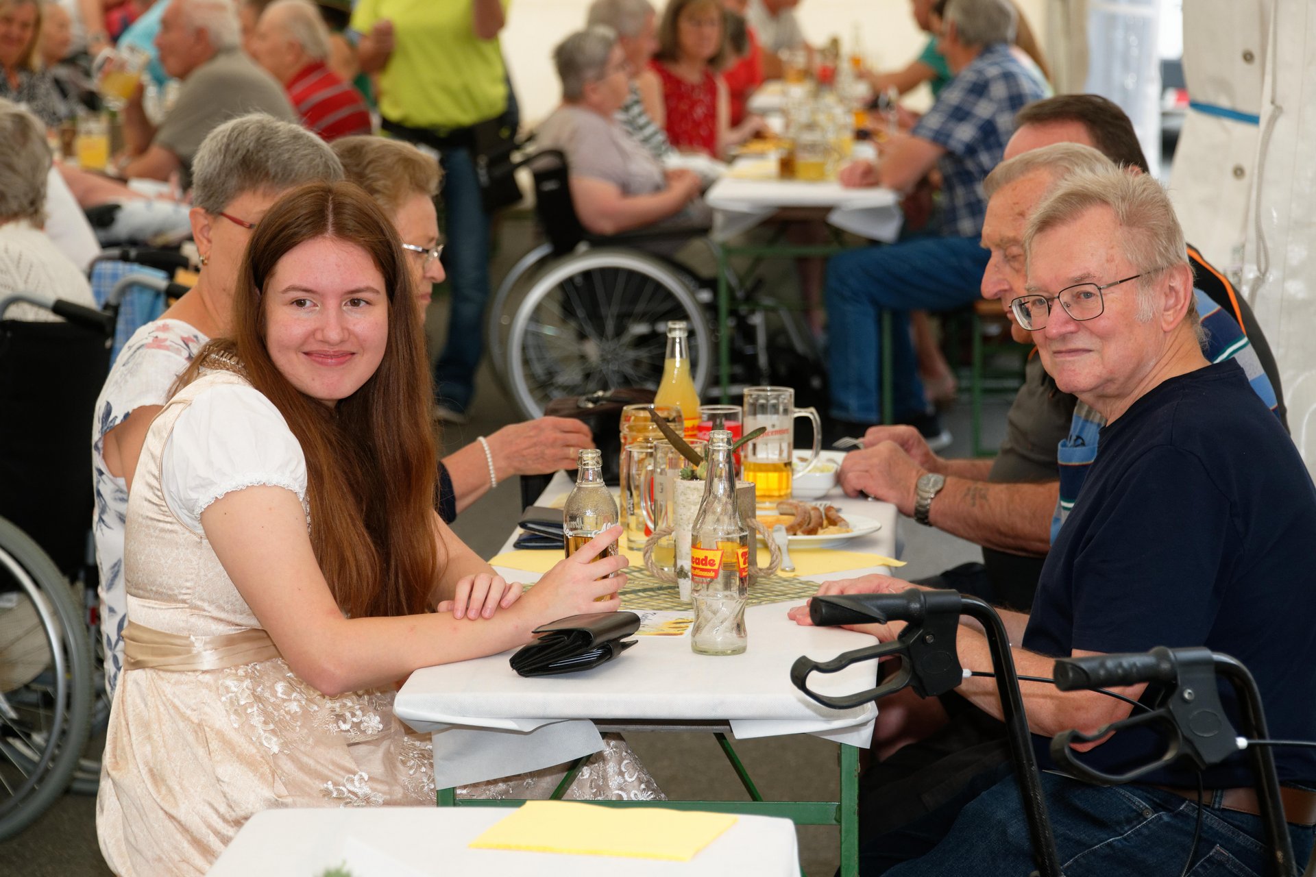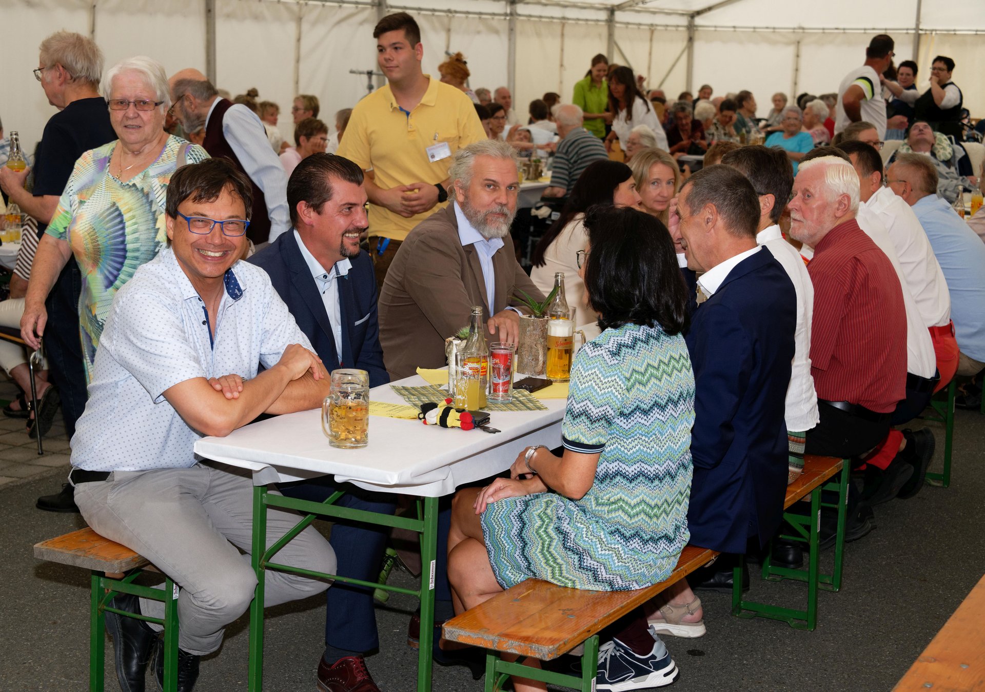 In diesem Jahr fand erstmals der Spätsommerfrühschoppen statt und ersetzte damit das traditionelle Spätsommerfest. Begleitet von der Musikgruppe „Freindschoft“, die Band aus dem Waldviertel, die für die perfekte musikalische Umrahmung sorgte, wurde das Lied „Wir sind eine große Familie“ angestimmt. Dabei sangen nicht nur Ehrenamtliche, Personal und Bewohnerinnen und Bewohner mit, sondern auch die Angehörigen und es entwickelte sich eine überaus heitere und ausgelassene Stimmung. Kulinarisch wurden die Gäste bestens mit Leckereien vom Grill und einem reichhaltigen Kuchenbuffet verwöhnt. Der reibungslose Ablauf des Festes wurde durch die engagierten Mitarbeiterinnen und Mitarbeiter des PBZ und die zahlreichen Ehrenamtlichen möglich gemacht, die in allen Bereichen tatkräftig mithalfen.