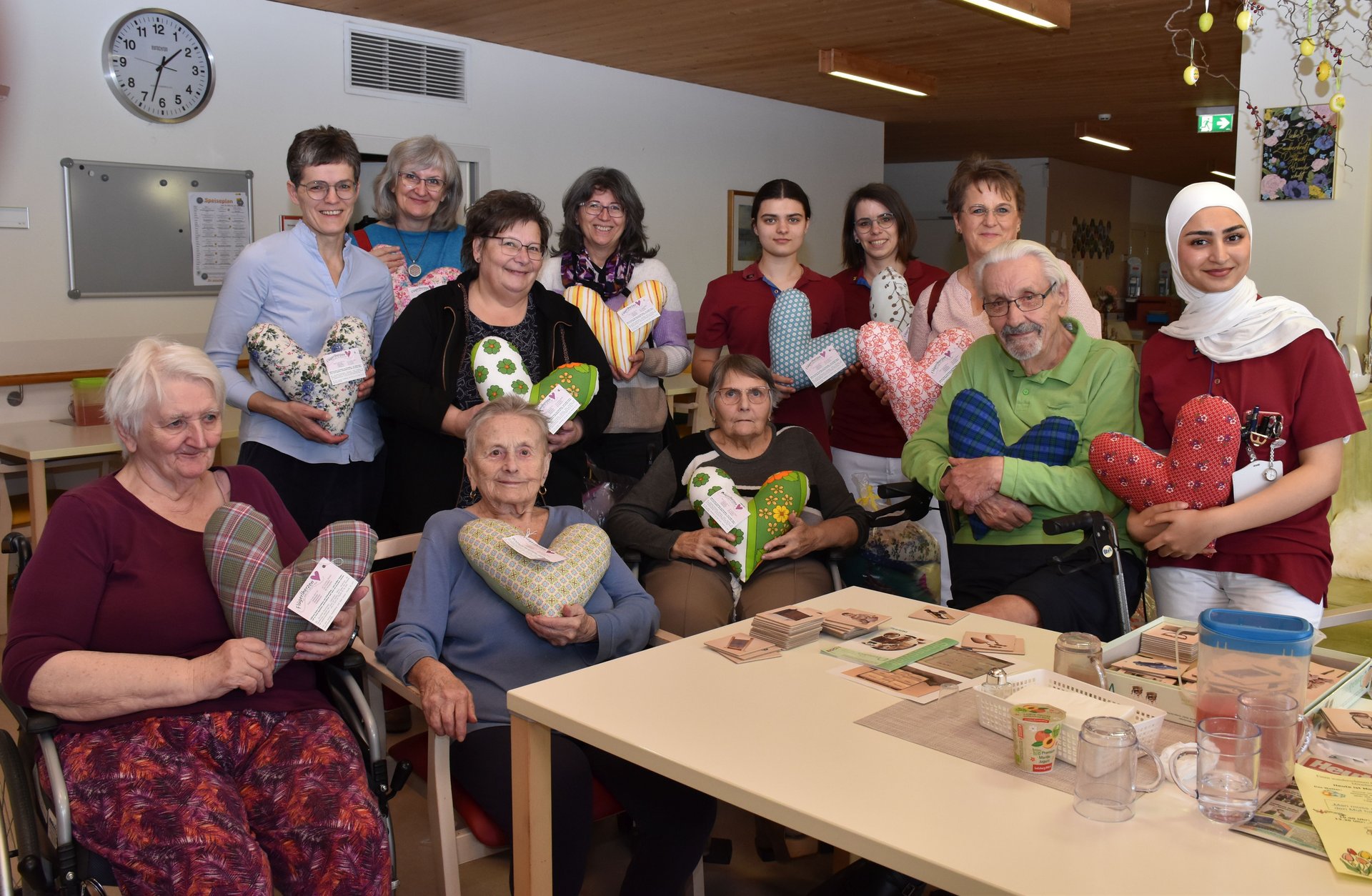 „Wir haben ein Herz für Dich“ lautet das Motto des Vereines „Flügerlherzen“ aus Waldenstein. Ehrenamtlich und mit viel Liebe nähen die engagierten Damen des Vereines die bunten Seelentröster. Diesmal wurden die Bewohnerinnen und Bewohner des Pflege- und Betreuungszentrums Waidhofen/Thaya mit den Herzen beschenkt. „Wir haben das 2000ste Herz hier in Waidhofen weitergegeben“, freut sich Gabriele Amstetter, die zusammen mit Klaudia Pichler und Claudia Pregesbauer vor fünf Jahren die Gruppe ins Leben gerufen hat und die seither auf über 30 „Herzenmacherinnen“ angewachsen ist. „Es macht uns noch genau so viel Freude die Herzen zu nähen und zu verschenken, wie am ersten Tag“, sind sich alle einig. Außerdem näht die Gruppe auch Herzen für Kinder und sogenannte „Flügerl“, sie dienen als spezielle Lagerungskissen für schwerkranke Kinder. Weil das Material aus Spendengeldern finanziert wird, bedanken sich die Flügerlherzen für jede Spende herzlich.
