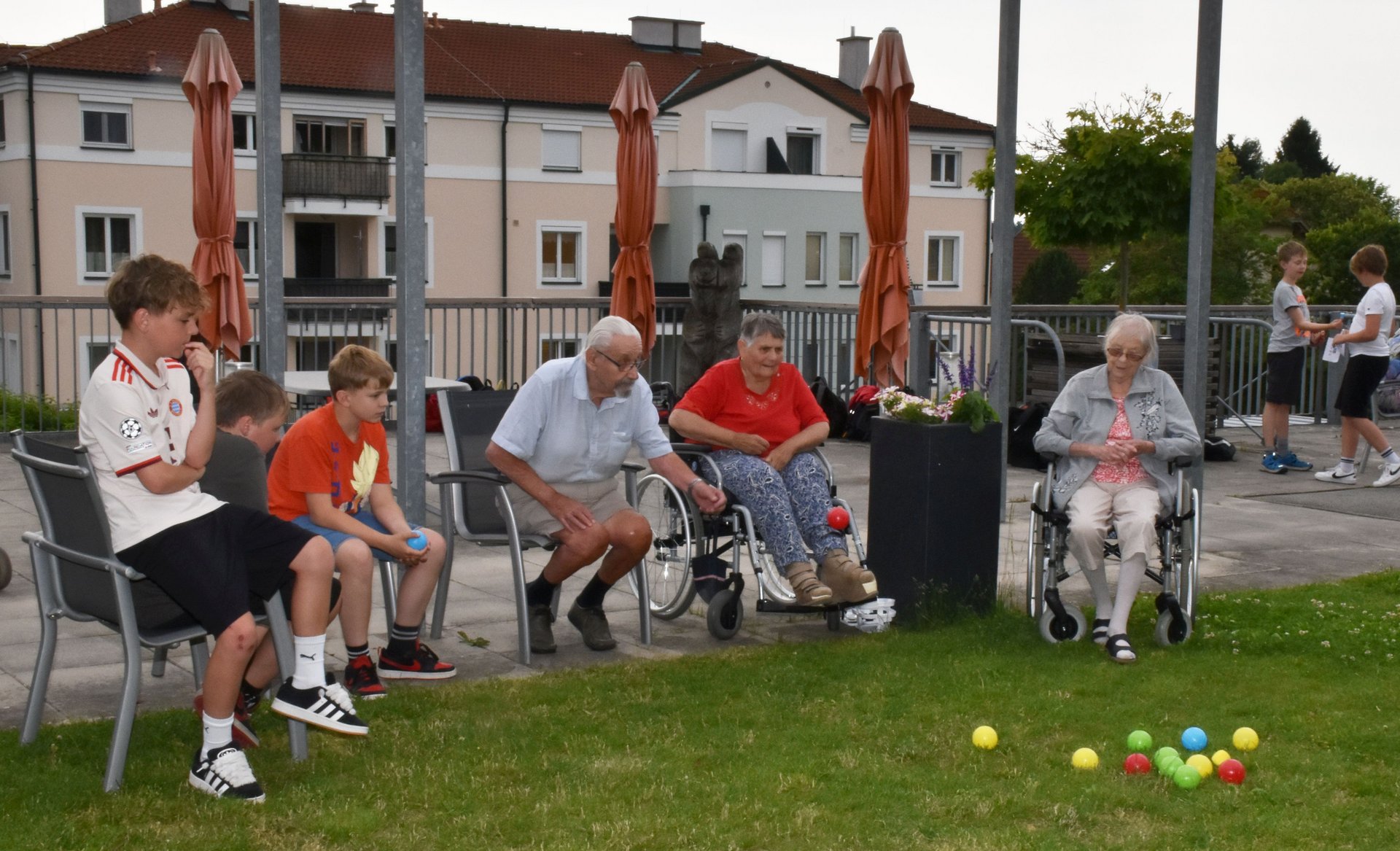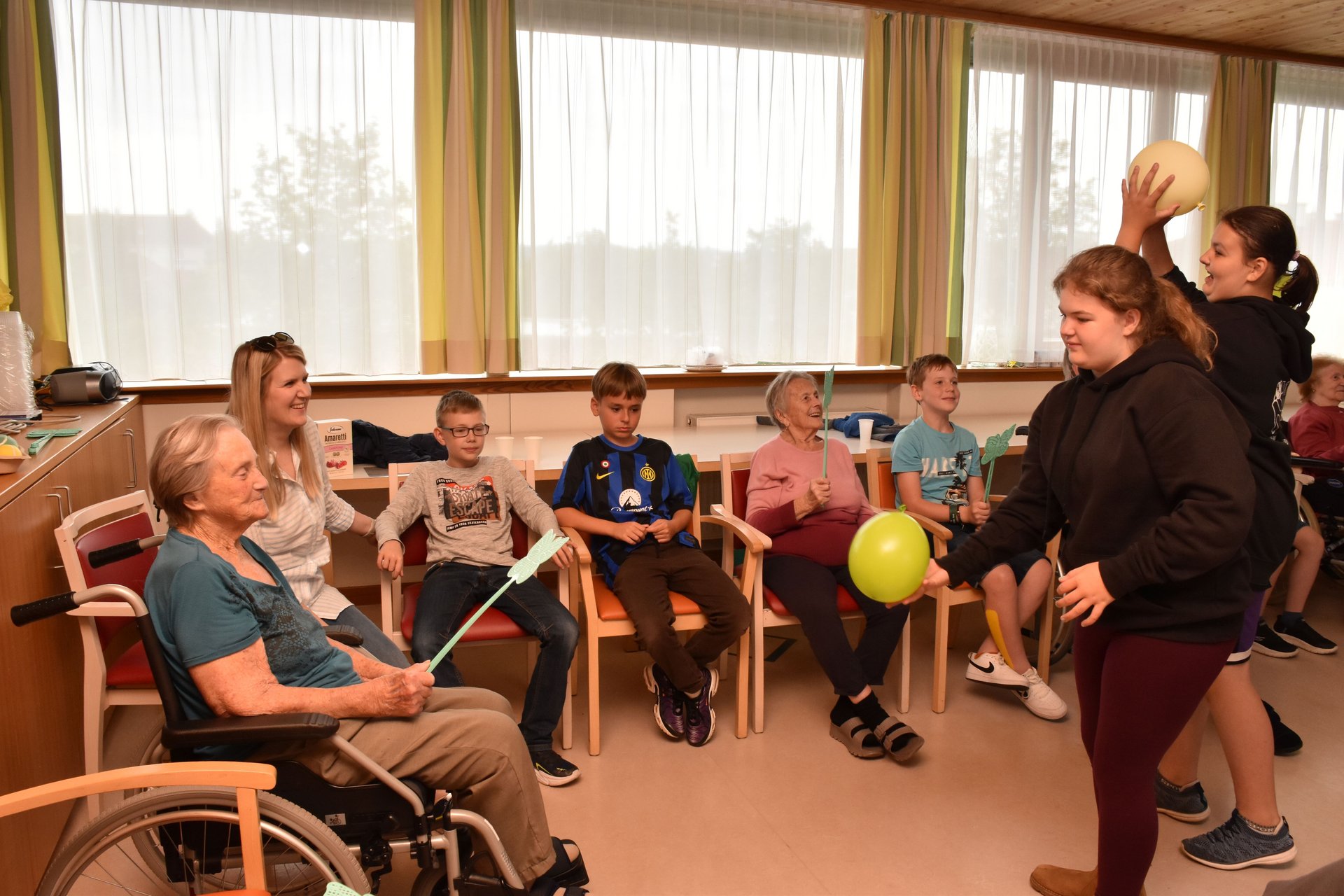 Es gibt so viele Fotos von den gemeinsamen Aktivitäten, dem Spaß und auch Abenteuer, dass es unmöglich ist, sie alle hier zu zeigen. Dennoch hoffe ich, mit meiner Auswahl dem gerecht zu werden, was die Schülerinnen und Schüler sowie alle Bewohnerinnen und Bewohner hier geleistet haben. Ohne gemeinsames Agieren, die nötige Portion Rücksichtnahme dem Alter gegenüber und Spaß am Tun und Schaffen wäre diese Fotogeschichte nicht zustande gekommen. Es gibt diese vielen jungen Menschen - sie tragen das Herz am rechten Fleck und sind interessiert, den Menschen Freude zu bereiten!